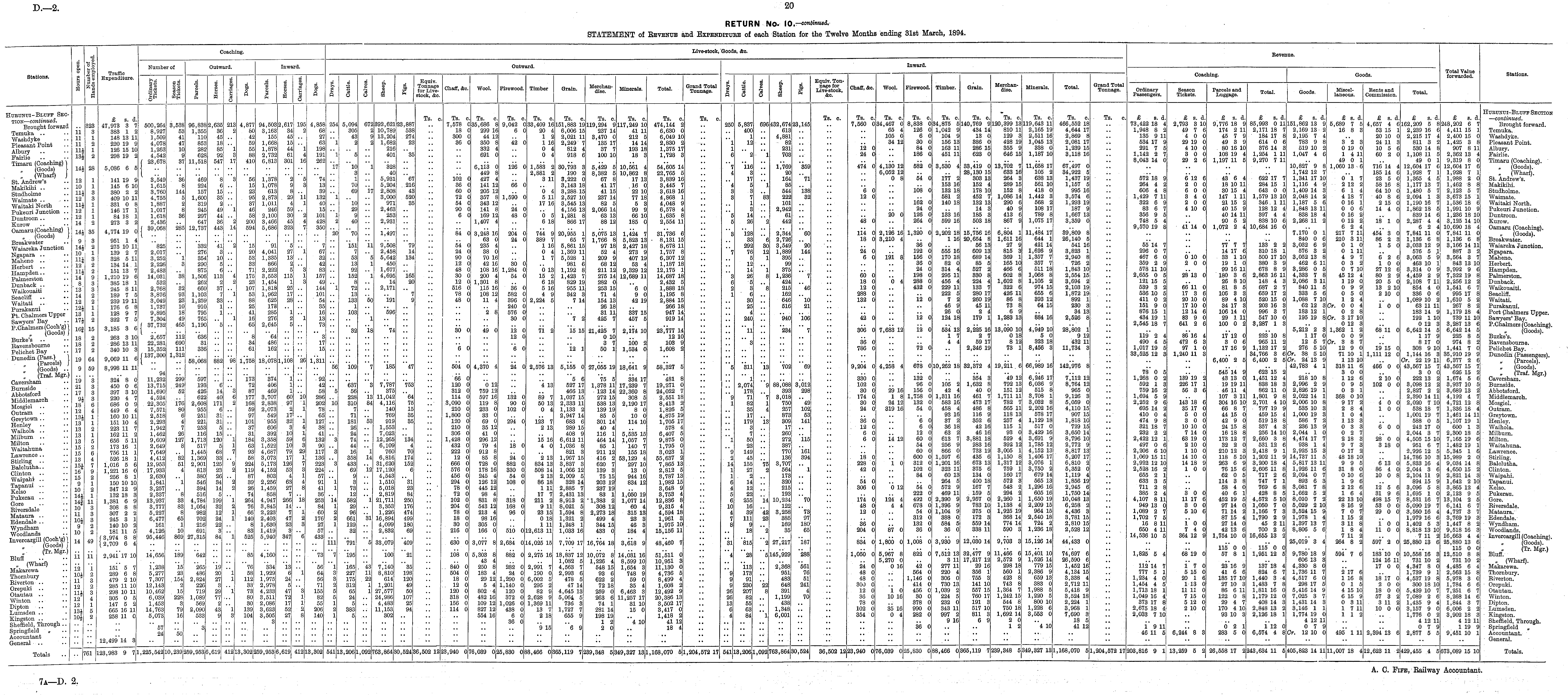 RETURN No. 10 .— continued. STATEMENT of Revenue and Expenditure of each Station for the Twelve Months ending 31st March, 1894.