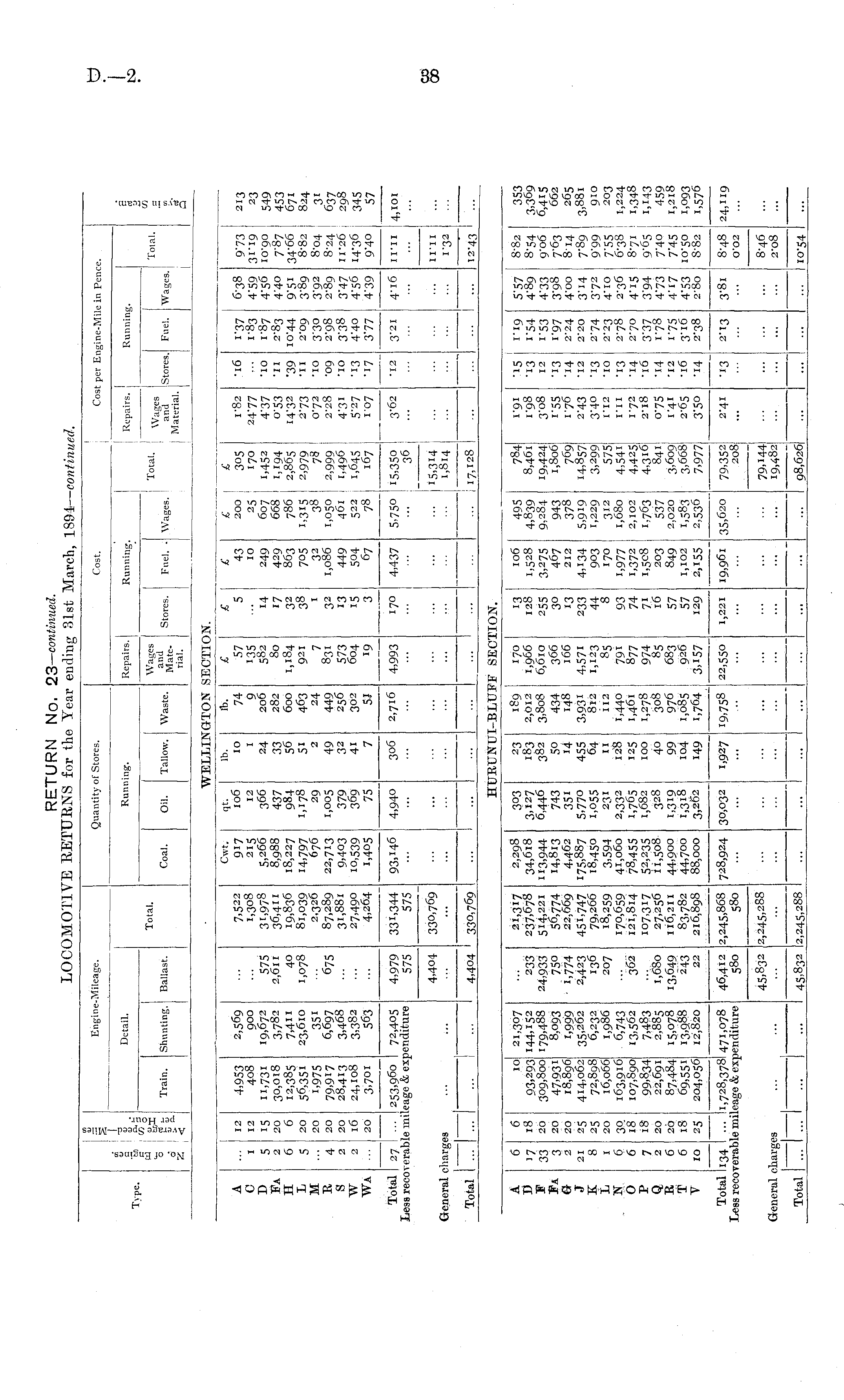 RETURN No. 23— continued. LOCOMOTIVE RETURNS for the Year ending 31st March, 1894— continued.