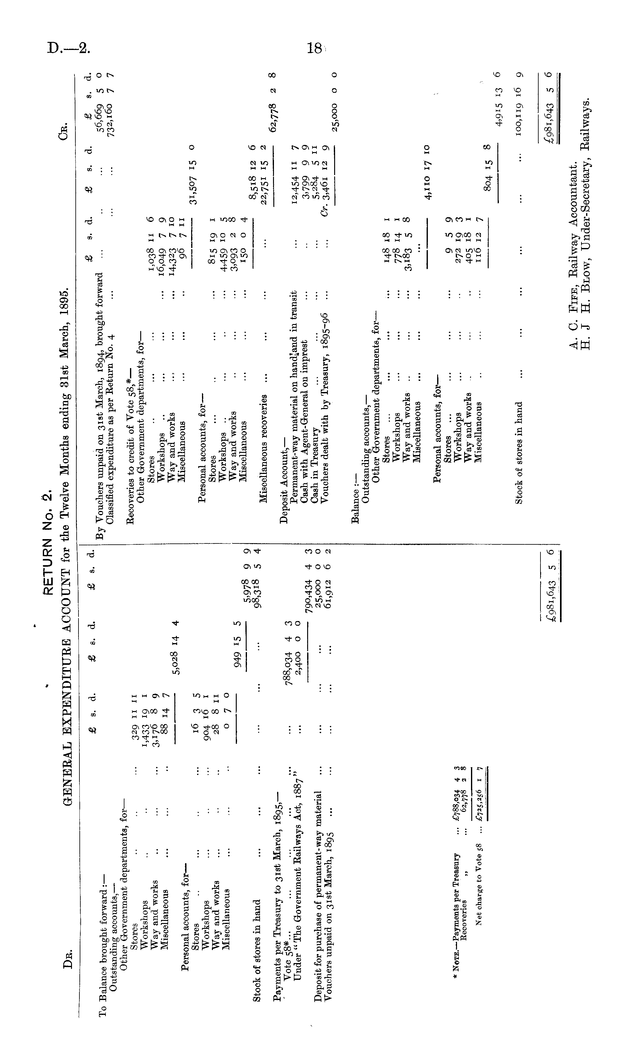 RETURN No. 2. GENERAL EXPENDITURE ACCOUNT for the Twelve Months ending 31st March, 1895.