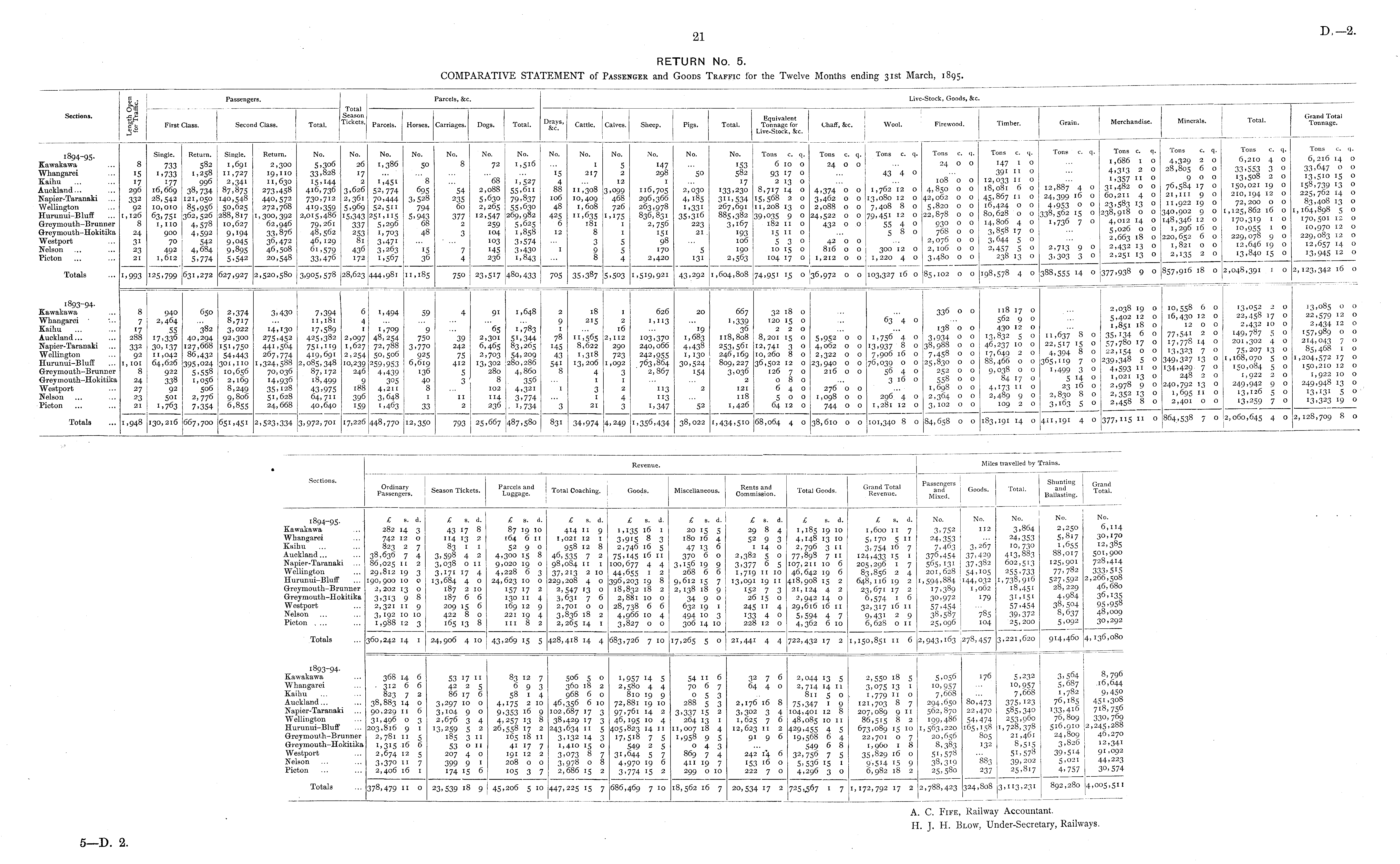 RETURN No. 5. COMPARATIVE STATEMENT of Passenger and Goods Traffic for the Twelve Months ending 31st March, 1895.