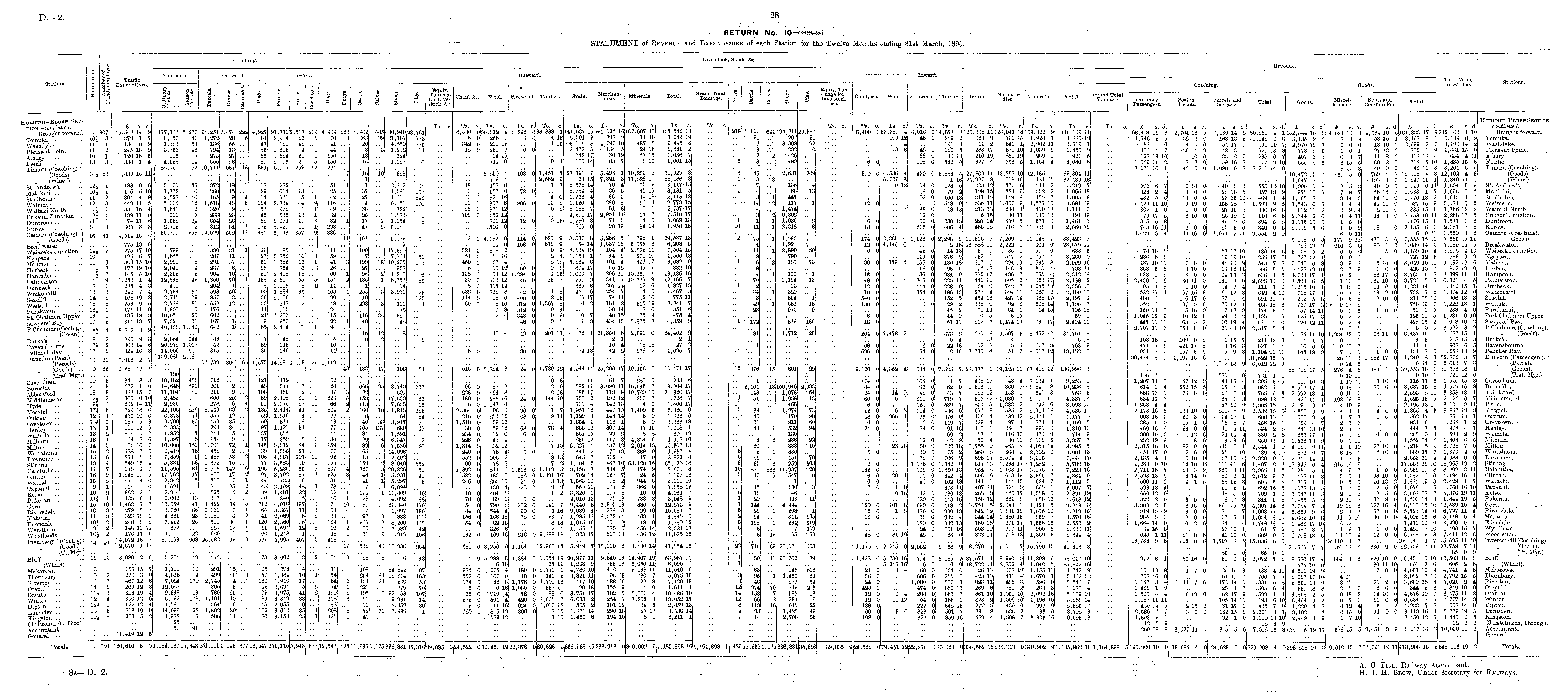 RETURN No. 10— continued. STATEMENT of Revenue and Expenditure of each Station for the Twelve Months ending 31st March, 1895.