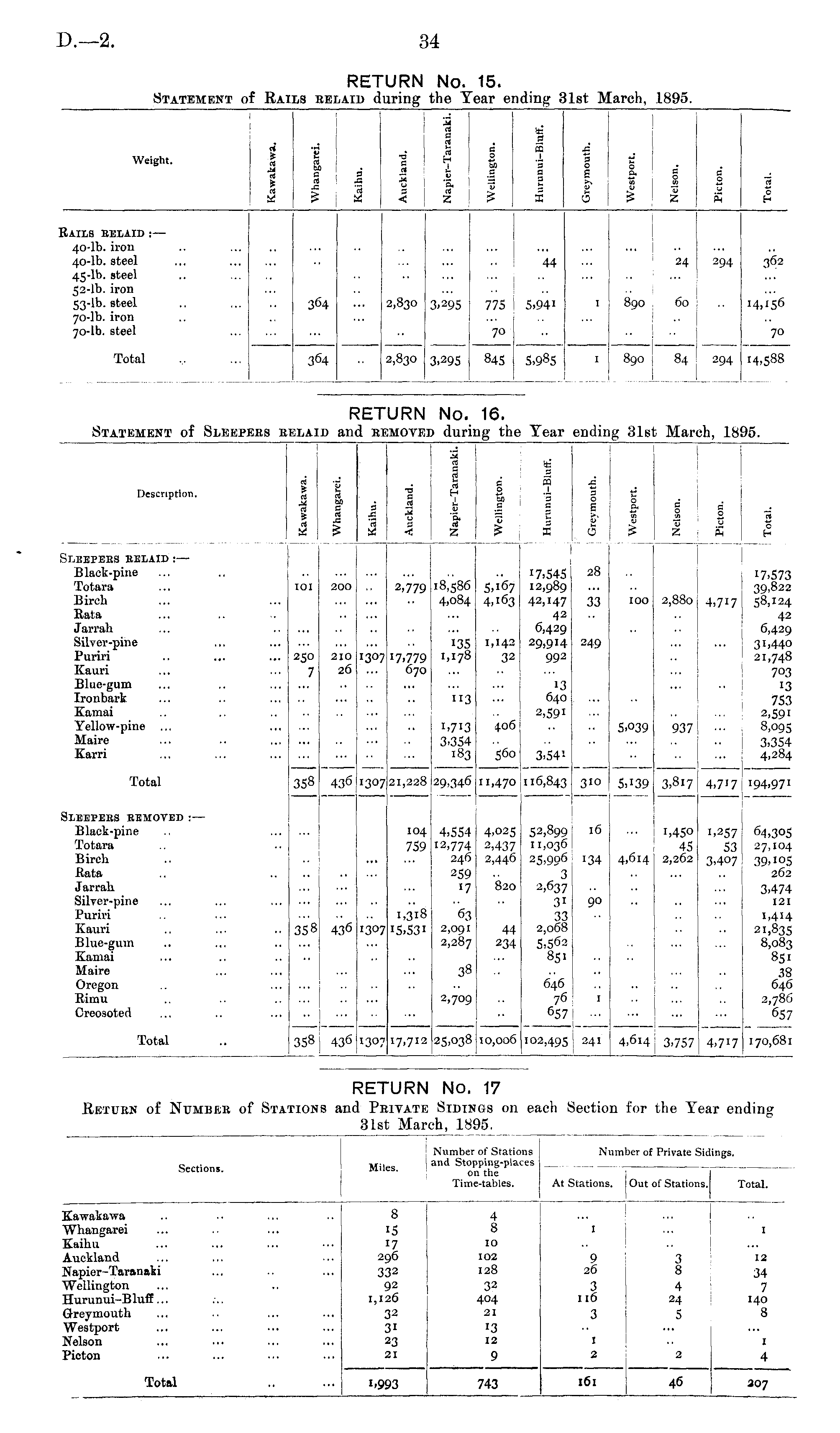 RETURN No. 16. Statement of Sleepers relaid and removed during the Year ending 31st March, 1895.