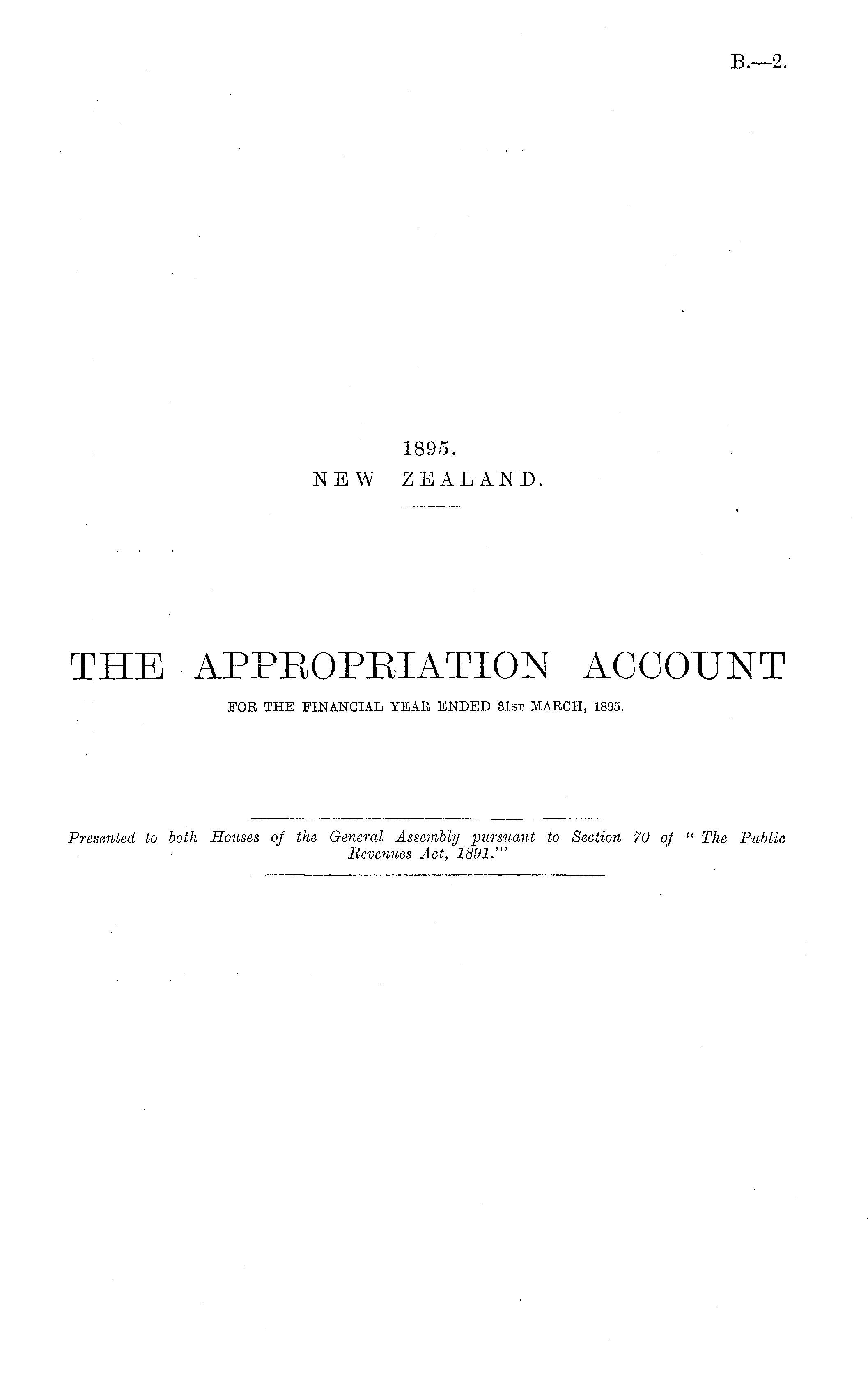 THE APPROPRIATION ACCOUNT FOR THE FINANCIAL YEAR ENDED 31st MARCH, 1895.