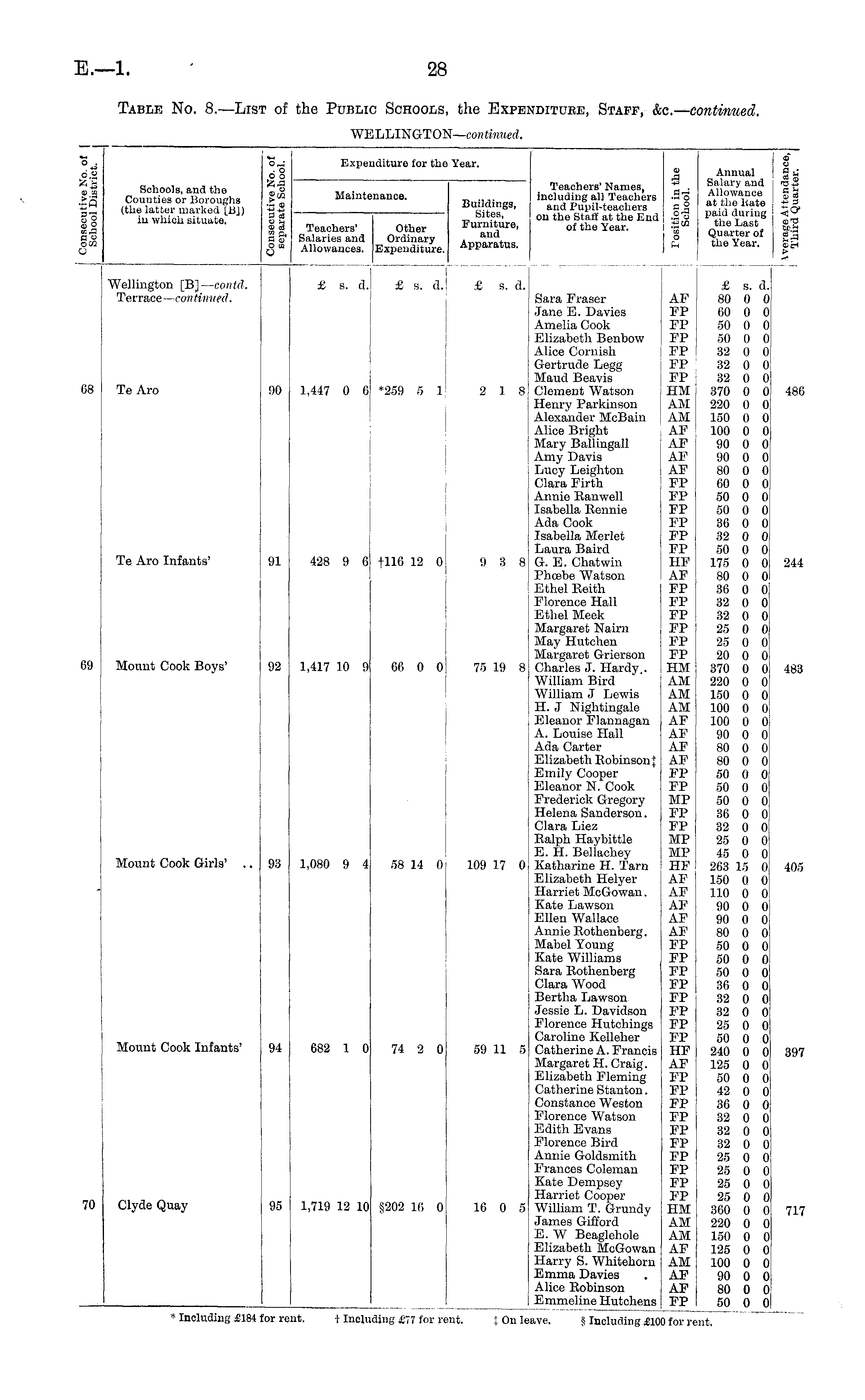 Table No. 8.—List of the Public Schools, the Expenditure, Staff, &c.— continued. WELLINGTON— continued.