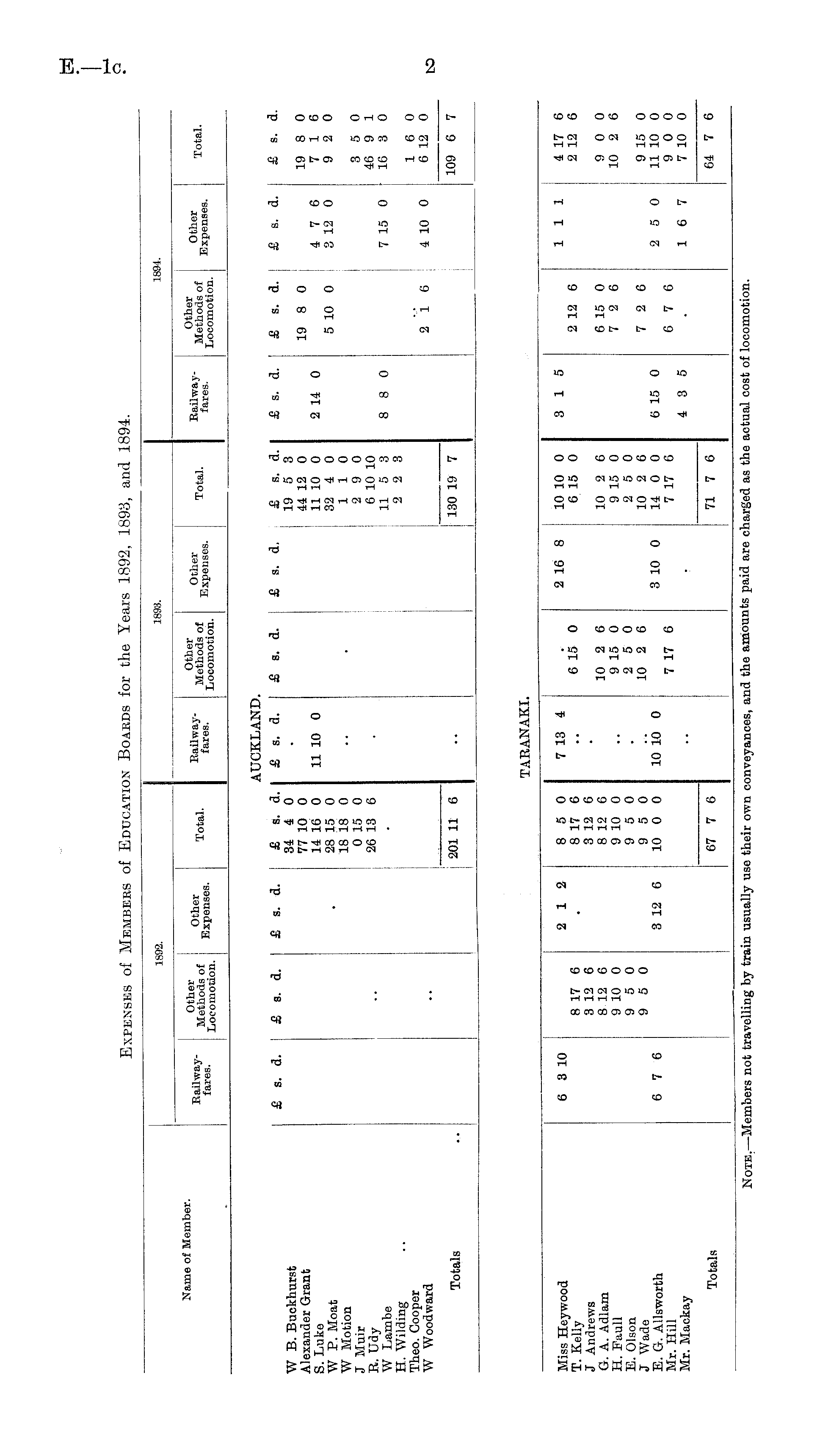 Expenses of Members of Education Boards for the Years 1892, 1893, and 1894.