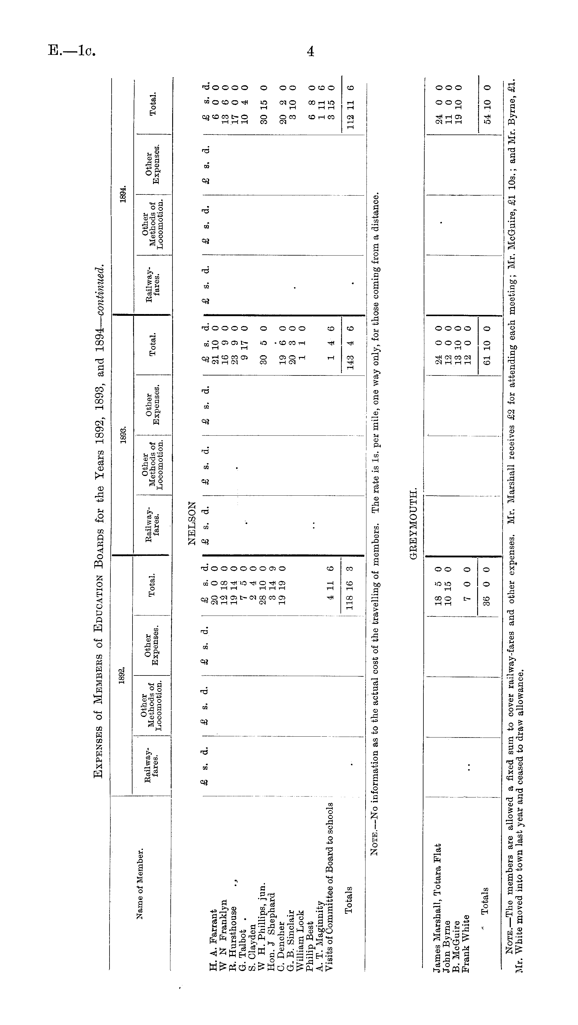 Expenses of Members of Education Boards for the Years 1892, 1893, and 1894— continued.