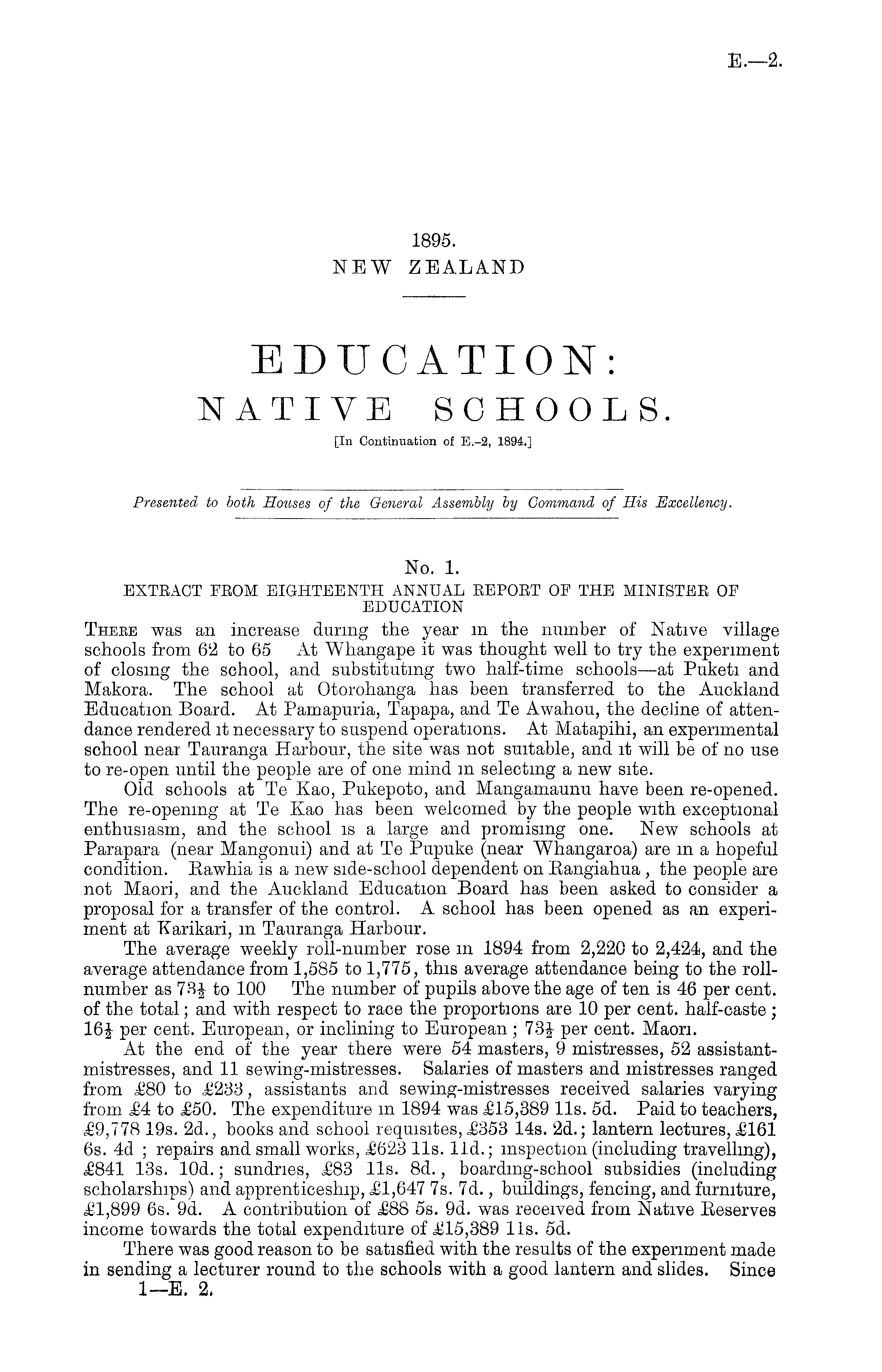 EDUCATION: NATIVE SCHOOLS. [In Continuation of E.-2, 1894.]