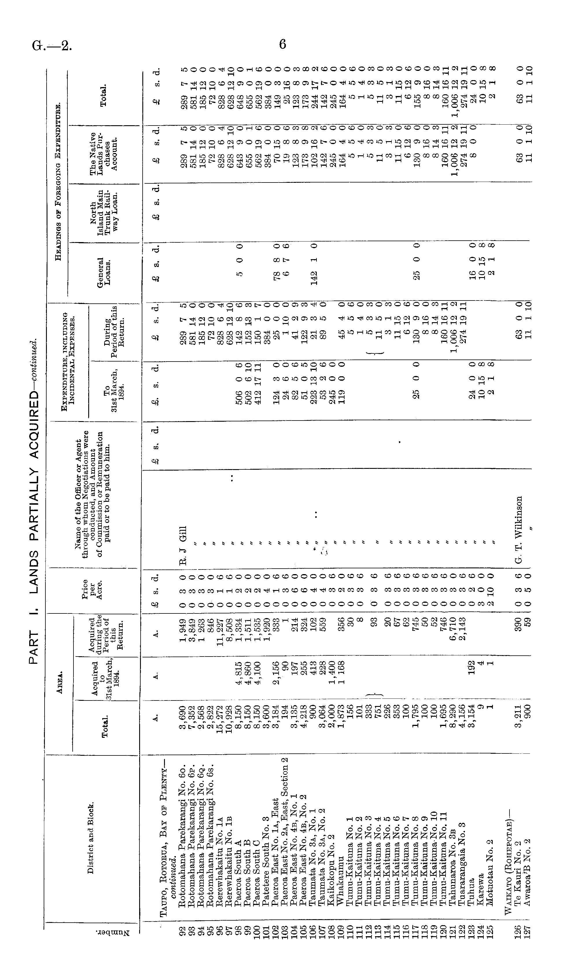 Area. Headings of Forei :0ing Expenditure. Expenditure, including Incidental Expenses. District and Block. Acquired to 31st March, 1894. Acquired during the Period of this Beturn. Price per Acre. Name of the Officer or Agent through whom Negotiations were conducted, and Amount of Commission or Kemuneration paid or to be paid to him. North Island Main Trunk Bailway Loan. The Native Lands Purchases Account. a Total. General Loans. Total. To 31st March, 1894. During Period of this Keturn. A. A. A. A. £ s. a. £ s. a. £. s. a. £ s. d. £ s. a. £ s. a. £ s. a. £ s. a. 92 93 94 95 96 97 98 99 100 101 102 103 104 105 106 107 108 109 110 111 112 113 114 115 116 117 118 119 120 121 122 123 124 125 Tatjpo, Rotoeua, Bay op Plenty — continued. Kotomahana Parekarangi No. 6o. Rotomahana Parekarangi No. 6p. Rotomahana Parekarangi No. 6q. Rotomahana Parekarangi No. 6s. Rerewhakaitu No. Iα Rerewhakaitu No. Iβ Paeroa South A Paeroa South B Paeroa South 0 Patetere South No. 3 Paeroa East No. Iα, East Paeroa East No. 2a, East, Section 2 Paeroa East No. 4b, No. 1 Paeroa East No. 4b, No. 2 Taumata No. 3a, No. 1 Taumata No. 3a, No. 2 Kaikokopu No. 2 Whakaumu Tumu-Kaituna No. 1 Tumu-Kaituna No. 2 Tumu-Kaituna No. 3 Tumu-Kaituna No. 4 Tumu-Kaituna No. 5 Tumu-Kaituna No. 6 Tumu-Kaituna No. 7 Tumu-Kaituna No. 8 Tumu-Kaituna No. 9 Tumu-KaitunaNo. 10 Tumu-Kaituna No. 11 Tahunaroa No. 3b Tuararangaia No. 3 Tuhua Karewa Motuotau No. 2 3,690 7,352 2,568 2,822 15,272 10,928 8,150 8,150 8,150 3,600 3,184 194 ( 3,135 4,218 900 3,064 2,000 1,873 156 101 333 i) 751 1} 226 353 100 : 1,795 100 100 1,695 8,290 4,156 3,154 9 1 4,815 4,860 4,100 2,156 90 197 255 413 228 1,400 1 168 192 4 1 1,949 3,849 1 263 846 11,227 8,508 1,334 1,511 1,535 1,920 333 1 214 324 102 559 0 3 0 0 3 0 0 3 0 0 3 0 0 16 0 16 0 2 0 0 2 0 0 2 0 0 4 0 0 16 0 3 6 0 6 0 0 6 0 0 4 0 0 4 0 0 3 6 0 2 0 0 3 6 0 3 6 E. J Gill 506 0 6 502 6 10 412 17 11 124 3 0 24 6 0 82 5 6 51 0 5 223 13 10 53 2 6 245 0 0 119 0 0 289 7 5 581 14 0 185 12 0 72 10 0 828 6 4 628 12 10 142 8 6 152 13 3 150 1 7 384 0 0 25 0 0 1 10 0 41 2 9 122 9 3 21 3 4 89 5 0 5 0 0 78 8 0 6 7 6 142 1 0 289 7 5 581 14 0 185 12 0 72 10 0 828 6 4 628 12 10 643 9 0 655 0 1 562 19 6 384 0 0 70 15 0 19 8 6 123 8 3 173 9 8 102 16 2 142 7 6 245 0 0 164 4 0 5 5 6 14 0 5 3 3 11 5 0 3 13 11 15 0 6 12 6 130 9 0! 8 16 0 8 14 3 160 16 11 1,006 12 2 274 19 11 8 0 0 289 7 5 581 14 0 185 12 0 72 10 0 828 6 4 628 12 10 648 9 0 655 0 1 562 19 6 384 0 0 149 3 0 25 16 0 123 8 3 173 9 8 244 17 2 142 7 6 245 0 0 164 4 0 5 5 6 14 0 5 3 3 11 5 0 3 13 11 15 0 6 12 6 155 9 0 8 16 0 8 14 3 160 16 11 1,006 12 2 274 19 11 24 0 0 10 15 8 2 18 356 30 8 45 4 0 5 5 6 14 0 f 5 3 3 1 11 5 0 3 13 11 15 0 6 12 6 130 9 0 8 16 0 8 14 3 160 16 11 1,006 12 2 274 19 11 93 0 3 6 20 67 62 745 50 52 746 6,710 2,143 0 3 6 0 3 6 0 3 6 0 3 6 0 3 6 0 3 6 0 3 6 0 3 0 0 3 6 0 2 6 3 0 0 2 10 0 25 0 0 25 0 0 192 4 1 24 0 0 10 15 8 2 18 16 0 0 10 15 8 2 18 126 127 Waikato (Rohepotae) — Te Kauri No. 2 Awaroa'B No. 2 3,211 900 i 0 3 6 0 5 0 G. T. Wilkinson 63 0 0 11 1 10 63 0 0 11 1 10 63 0 0 390 59