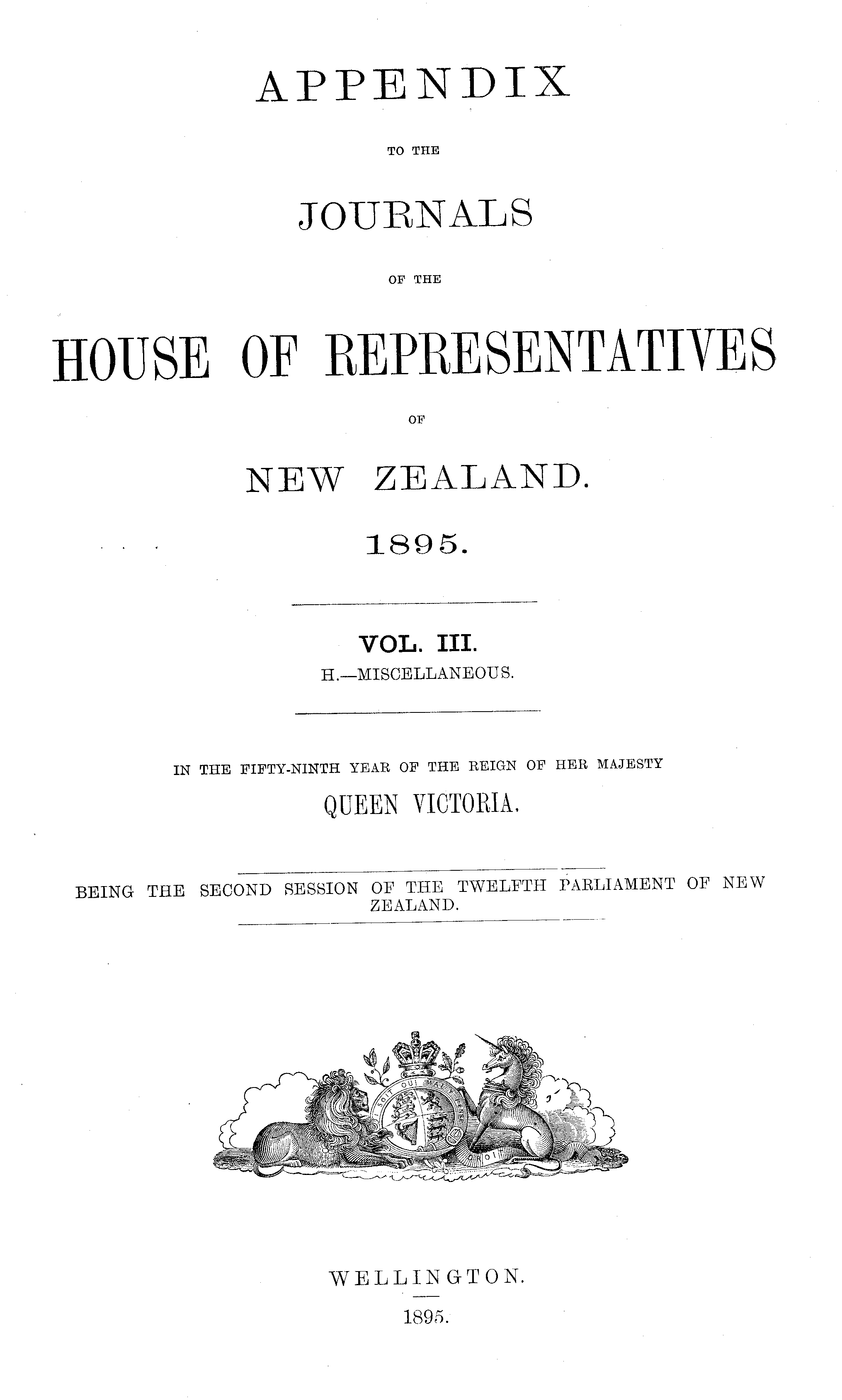 APPENDIX TO THE JOURNALS OF THE HOUSE OF REPRESENTATIVES OF NEW ZEALAND. 1895.