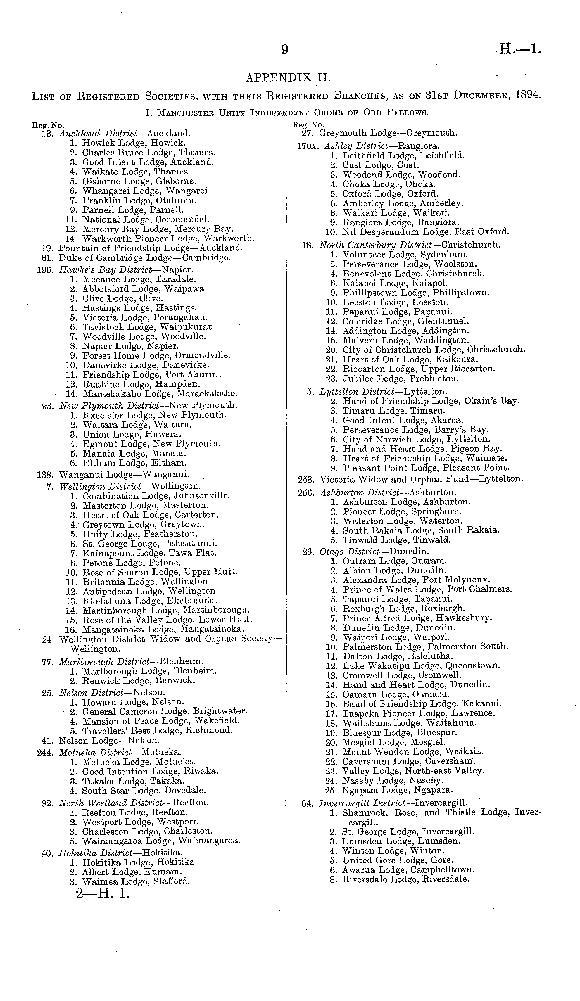 APPENDIX 11. List of Begistebed Societies, with thbie Begistebed Beanohes, as on 31st December, 1894, I. Manchester Unity Independent Obdeb of Odd Fellows.