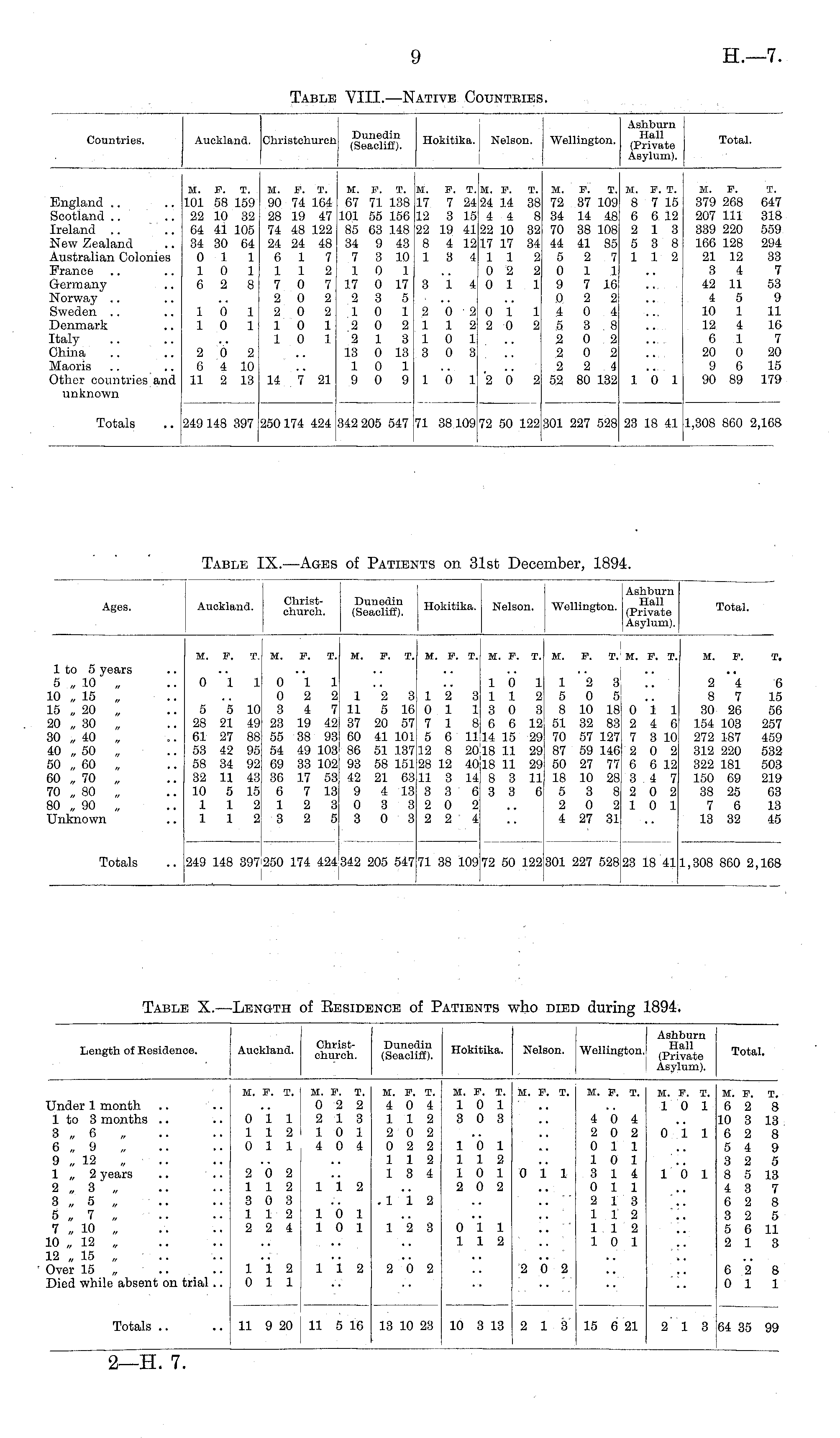 Countries. Auckland. Christchurch Dunedin tTnkiHi™ (Seacliff). Hokitika. Nelson. Wellington. Ashburn Hall (Private Asylum). Total. England Scotland Ireland New Zealand Australian Colonies France Germany Norway Sweden Denmark Italy China Maoris Other countries and unknown M. F. T. 101 58 159 22 10 32 64 41 105 34 30 64 0 11 10 1 6 2 8 M. F. T. 90 74 164 28 19 47 74 48 122 24 24 48 6 17 112 7 0 7 2 0 2 2 0 2 10 1 10 1 M. F. T. 67 71 138 101 55 156 85 63 148 34 9 43 7 3 10 10 1 17 0 17 2 3 5 10 1 2 0 2 2 13 13 0 13 10 1 9 0 9 M. V. T. 17 7 24 12 3 15 22 19 41 8 4 12 13 4 3 14 M. F. T. 24 14 38 4 4 8 22 10 32 17 17 34 112 0 2 2 0 11 M. F. T. 72 37 109 34 14 48 70 38 108 44 41 85 5 2 7 0 11 9 7 16 0 2 2 4 0 4 5 3 8 2 0 2 2 0 2 2 2 4 52 80 132 M. F. T. 8 7 15 6 6 12 2 13 5 3 8 112 M. F. 379 268 207 111 339 220 166 128 21 12 3 4 42 11 4 5 10 1 12 4 6 1 20 0 9 6 90 89 T. 647 318 559 294 33 7 53 9 11 16 7 20 15 179 1 0 1 10 1 2 0 2 112 10 1 3 0 3 0 1 1 2 0 2 2 0 2 6 i 10 11 2 13 14 7 21 1 0 1 2 0 2 10 1 Totals 1,308 860 2,168 249 148 397 250174 424 342 205 547 71 38109 72 50 122 301 227 528 23 18 41