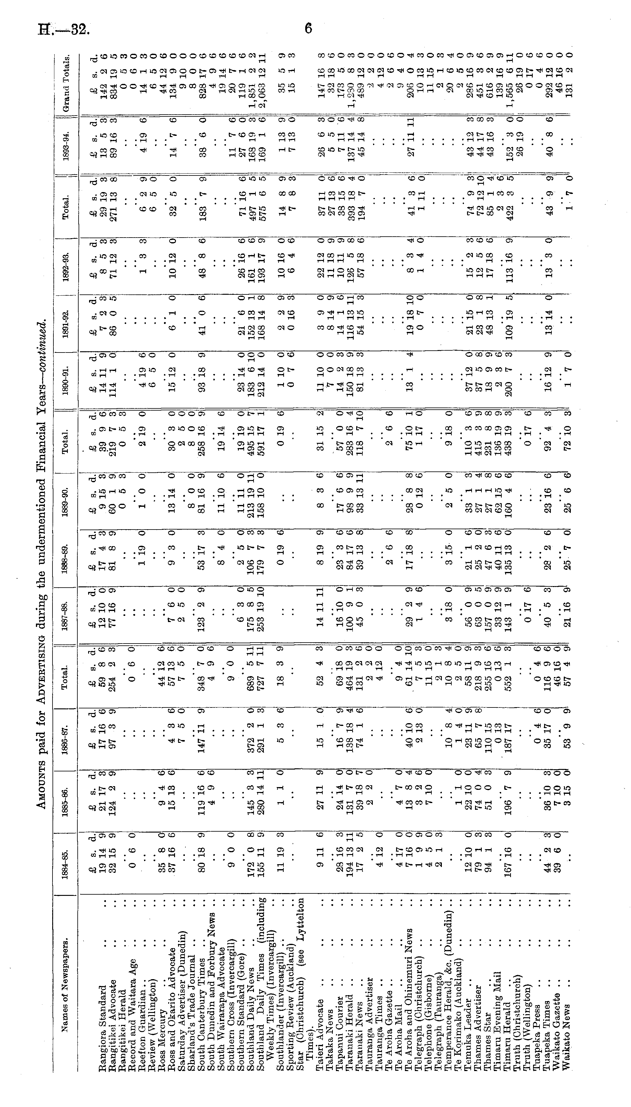 Names of Newspapers. 1884-85. 1885-86. 1886-87. Total. 1887-88. 1888-89. 1889-90. Total. 1890-91. 1891-92. 1892-93. Total. 1893-94. Grand Totals. Rangiora Standard Rangitikei Advocate Rangitikei Herald Record and Waitara Age Reef ton Guardian Review (Wellington) Ross Mercury Ross and Okarito Advocate Saturday Advertiser (Dunedin) Sharland's Trade Journal South Canterbury Times South Dunedin and Forbury News .. South Wairarapa Advocate Southern Cross (Invercargill) Southern Standard (Gore) Southland Daily News Southland Daily Times (including Weekly Times) (Invercargill) Southlander (Invercargill) Sporting Review (Auckland) Star (Christchurch) (see Lyttelton Times). Taieri Advocate Takaka News Tapanui Courier Taranaki Herald Taranaki News Tauranga Advertiser Tauranga Times Te Aroha Gazette Te Aroha Mail Te Aroha and Ohinemuri News Telegraph (Christchurch) Telephone (Gisborne) Telegraph (Tauranga) Temperance Herald, &c. (Dunedin) .. Te Korimako (Auckland) Temuka Leader Thames Advertiser Thames Star Timaru Evening Mail Timaru Herald Truth (Christchurch) Truth (Wellington) Tuapeka Press Tuapeka Times Waikato Gazette Waikato News £ S. d.l 19 14 9 32 15 9! £ s. d. 21 17 3 124 2 9 £ s. a. 17 16 6 97 3 9 £ s. d. 59 8 6 254 2 3 £ s. d. 12 10 0 77 16 9 £ s. d. 17 4 3 81 8 9 £ s. d. 9 15 3 60 1 9 0 5 3 £ s. d. 39 9 6 219 7 3 0 5 3| £ s. d. 14 11 9 114 1 0 £ s. a. 7 2 3 86 0 5 £ s. a. 8 5 3 71 12 3 £ s. a. 29 19 3 271 13 8 £ s. d. 13 5 3 89 16 3 £ s. d. 142 2 6 834 19 5 0 5 3 0 6 0 14 1 3 6 5 0 44 12 6 134 9 0 9 10 0 8 0 0 828 17 6 4 9 6 19 14 6 20 7 6 119 1 6 1,851 2 2 2,063 12 11 0 6 0 0 6 0 •• •• 119 0 10 0 i 2*19 0 4*±9 6 6 5 0 1 *3 3 6 *2 9 6 5 0 4*19 6 1 1 35 *8 0 37 16 6 9 *4 6 15 13 6 4 3 6 7 5 0 44 12 6 57 13 6 7 5 0 7 *6 0 2 5 0 9 *3 0 13 i4 0 30 3 0 2 5 0 8 0 0 258 16 9 15 12 0 6**1 0 10* i2 0 32 *5 0 14 7 6 80*18 9 119 16 6 4 9 6 147 il 9 348 7 0 4 9 6 123**2 9 53 17 3 8 "o 0 81 16 9 93 18 9 41**0 6 48**8 6 183 *7 9 38**6 0 9 "o 0 8**4 0 11 10 6 19 14 6 9 0 0 6 3 0 175 8 5 253 19 10 2 5 0 106 7 3 179 7 3 11 7 6 27 6 0 168 19 3 169 1 6 172**0 8 155 11 9 145 3 3 280 14 11 372 2 0 291 1 3 689 5 11 727 7 11 11 11 0 213 19 11 158 10 0 19 19 0 495 15 7 591 17 1 23 14 0 183 6 10 212 14 0 21 6 0 152 13 1 168 14 8 26 16 6 161 1 6 193 17 9 71 16 6 497 1 5 575 6 5 11 19 3 110 5 3 6 18 3 9 0 19 6 0 19 6 1 10 0 0 7 6 2 2 9 0 16 3 10 16 0 6 4 6 14 8 9 7 8 3 1 13 9 7 13 0 35 5 9 15 1 3 9 11 6 27 11 9 15 1 0 52 4 3 14 11 11 8 19 9 8 3 6 31 15 2 11 10 0 7 0 0 14 2 3 150 18 9 81 13 3 3 9 0 8 14 9 14 1 6 116 13 11 54 15 3 22 12 0 11 18 9 10 11 9 126 5 8 57 18 6 37 11 0 27 13 6 38 15 6 393 18 4 194 7 0 26 6 3 5 5 0 7 11 6 137 14 4 45 14 8 147 16 8 32 18 6 173 5 0 1,230 8 3 489 12 0 2 2 0 4 12 0 2 6 6 9 4 0 206 0 4 10 13 3 11 15 0 2 13 20 6 4 2 5 0 286 16 9 451 3 6 616 2 9 139 16 9 1,565 6 11 26 19 0 0 17 6 0 4 6 292 12 0 46 16 0 131 2 0 28 16 3 194 13 11 17 2 5 24 14 0 131 7 0 39 18 7 2 2 0 16 7 9 138 18 4 74 1 6 69 18 0 464 19 3 131 2 6 2 2 0 4 12 0 16 10 0 100 9 1 45 0 3 23 3 6 84 17 6 39 13 8 17 6 6 98 9 9 33 13 11 57 0 0 283 16 4 118 7 10 4 12 0 •• 2 *6 6 2 *6 6 •■ - I 4 17 0 7 16 0 19 9 4 5 0 2 13 4 7 0 13 8 4 3 2 6 7 10 0 40 io 6 2 13 0 9 4 0 61 14 10 7 5 3 11 15 0 2 13 10 8 4 2 5 0 58 11 9 218 9 3 255 16 6 0 13 6 552 1 3 29**2 9 14 6 17 18 8 28**8 8 0 12 6 75'io 1 1 17 0 13 "l 4 19 18 10 0 7 0 .. 8 3 4 14 0 41 *3 6 1 11 0 1 27 il 11 I I 110 22 10 0 74 0 4 51 0 3 10 8 4 14 0 23 11 9 65 7 8 110 15 0 13 187 17 3 18 0 315 0 2**5 0 9*18 0 12 10 0 79 1 3 94 1 3 56 0 9 63 0 5 157 0 9 33 12 9 143 1 9 21 1 6 25 2 0 47 6 3 40 11 6 135 13 0 33 1 3 27 1 4 27 1 8 62 15 6 160 4 6 110 3 6 415 3 9 231 8 8 136 19 9 438 19 3 37 12 0 37 5 8 18 9 9 2 3 6 200 7 3 21 15 0 23 1 8 48 13 1 15 2 3 12 5 6 17 18 6 74 9 3 72 12 10 85 1 4 2 3 6 422 3 5 43 12 3 44 17 8 43 16 3 167 ie 0 196**7 9 109 '±9 5 113 16 9 152 *3 0 26 19 0 0*i7 6 0*i7 6 44 2 3 39 6 0 36 10 3 7 10 0 3 15 0 0*4 6 35 17 0 0 4 6 116 9 6 46 16 0 57 4 9 40**5 3 28**2 6 23 16 6 92 4 3 16 i2 9 13*14 0 13 3 0 43 *9 9 40 *8 6 53**9 9' 21 16 9' 25**7 0 25**6 6' 72'io 3 17 0 1 *7 0 1 ' I ! 1 I