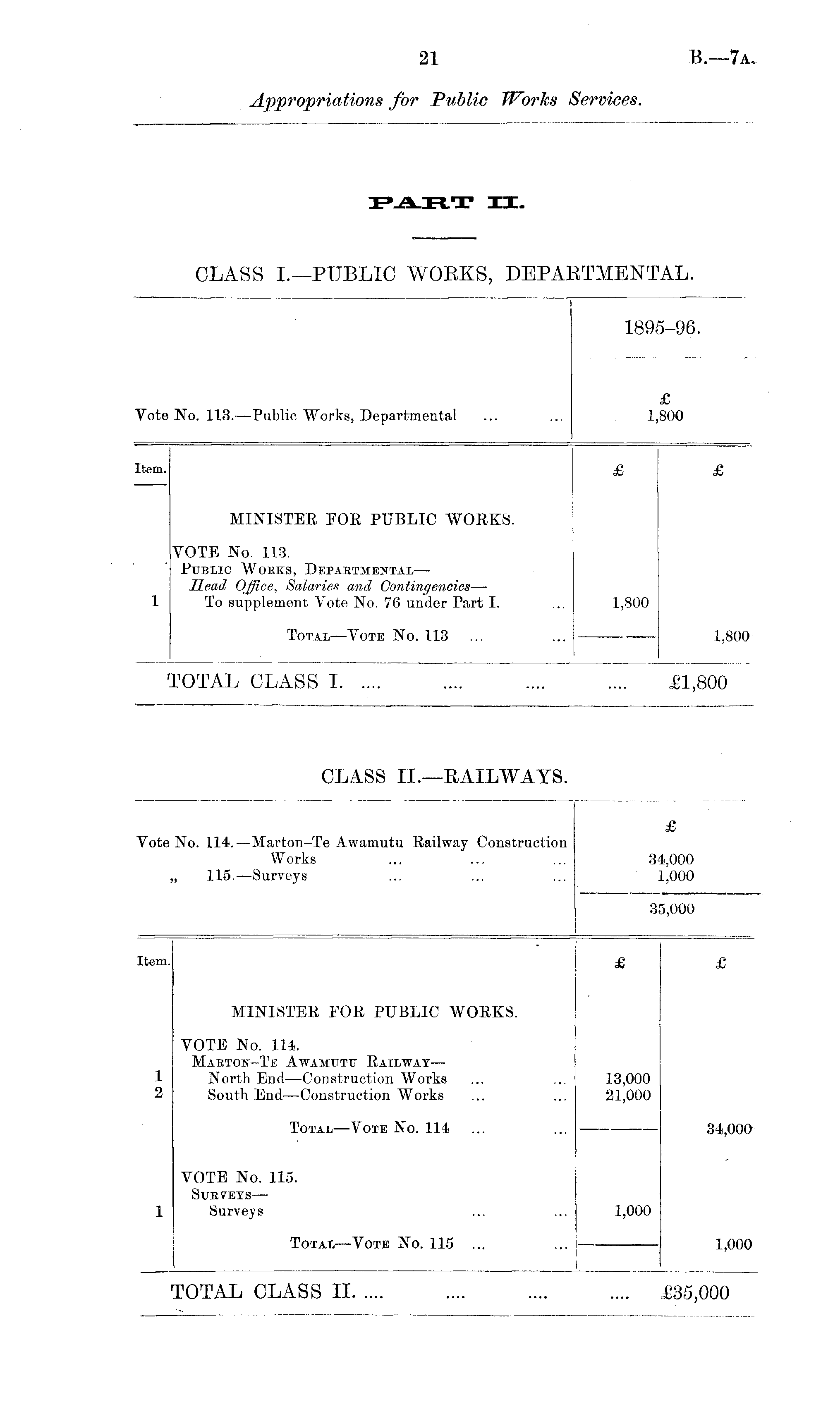 1895-96. £ ,800 ote No. 113. —Public Works, Departmental !tem. MINISTER FOR PUBLIC WORKS. VOTE No. 118. Public Works, Departmental— Head Office, Salaries and Contingencies — To supplement Vote No. 76 under Part I. 1,800 Total—Vote No. 113 ... 1,800 TOTAL CLASS I £1,800