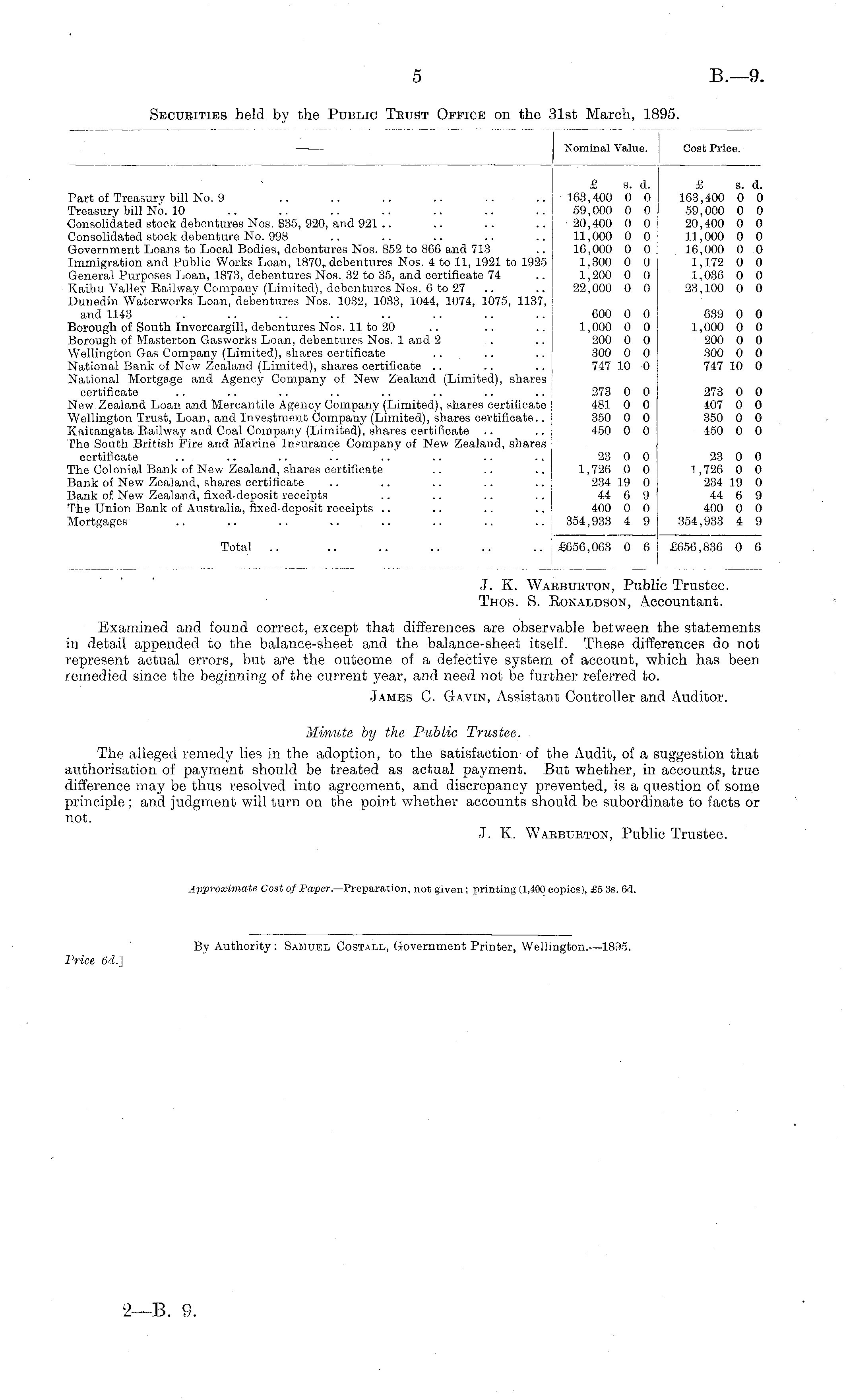Securities held by the Public Trust Office on the 31st March, 1895.