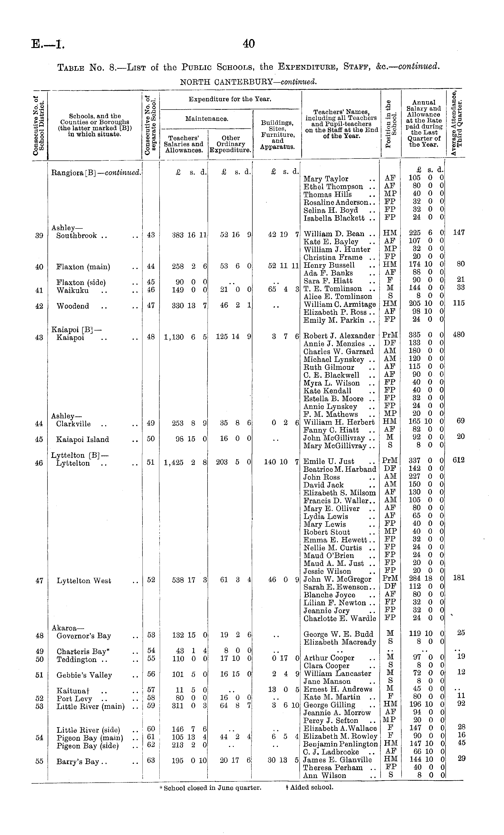 Table No. 8. —List of the Public Schools, the Expenditure, Staff, &c.— continued. NORTH CANTERBURY— continued.