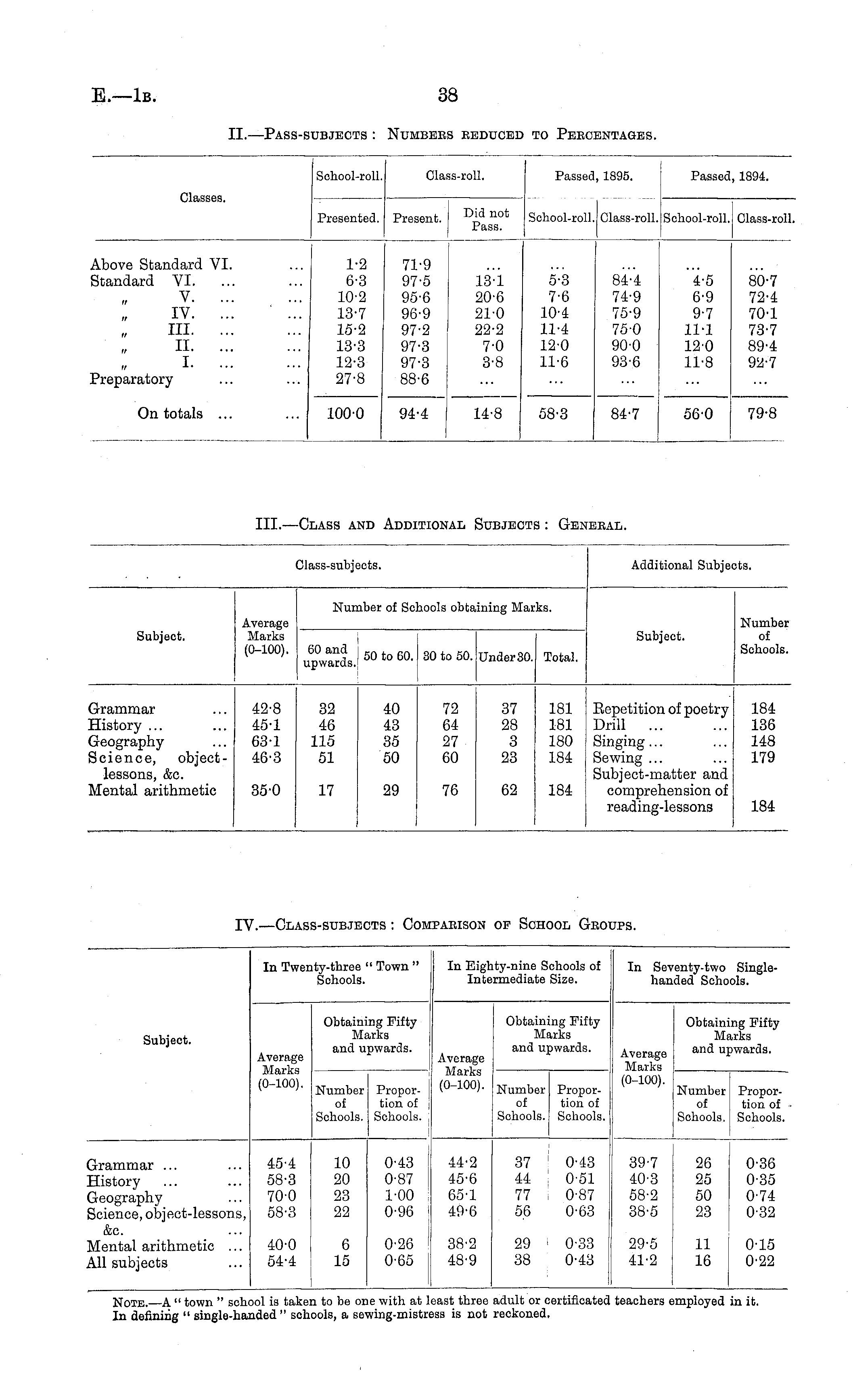 IOOi I-μ .ass-ro Passed, 1895. 'assei Classes. School-roll. Class-roll. Presented. Present. D i, d not Pass. School-roll. Class-roll ibove Standard VI. itandard VI. V. ... IV. ... III. ... II. ... I. 'reparatory 1-2 6-3 10'2 13-7 15-2 13-3 12-3 27-8 71-9 97-5 95-6 96-9 97-2 97'3 97-3 88-6 13-1 206 21-0 22-2 7-0 3-8 5-3 7-6 10-4 11-4 12-0 11-6 84'4 74'9 75-9 75-0 90-0 93'6 i-5 6-9 9-7 11-1 12-0 11-8 80-7 72-4 70-1 73-7 89-4 92-7 On totals ... 100-0 94-4 14-8 58-3 84-7 560 79-8