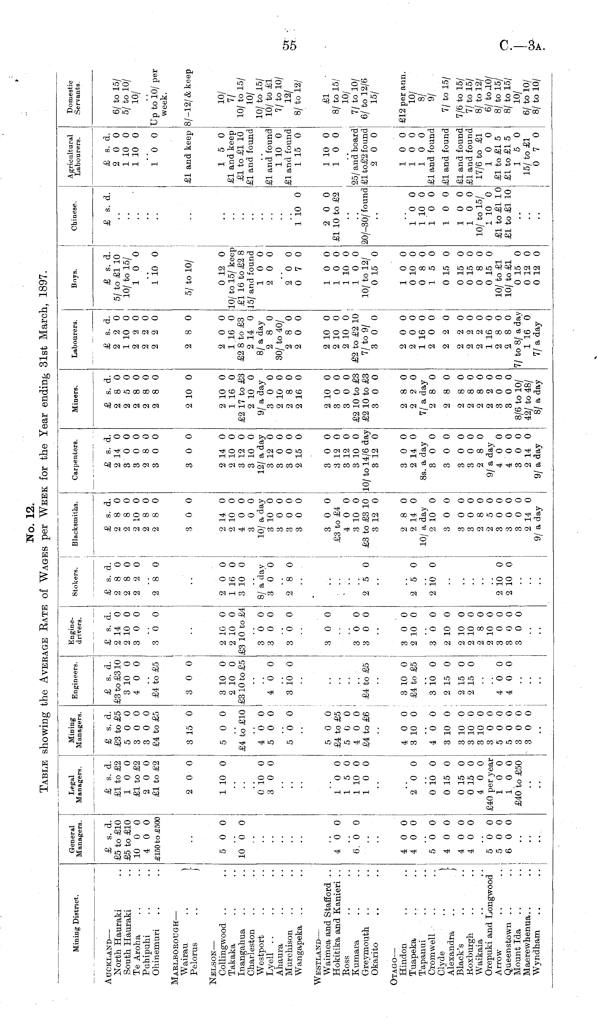 No. 12. Table showing the Average Rate of Wages per Week for the Year ending 31st March, 1897.