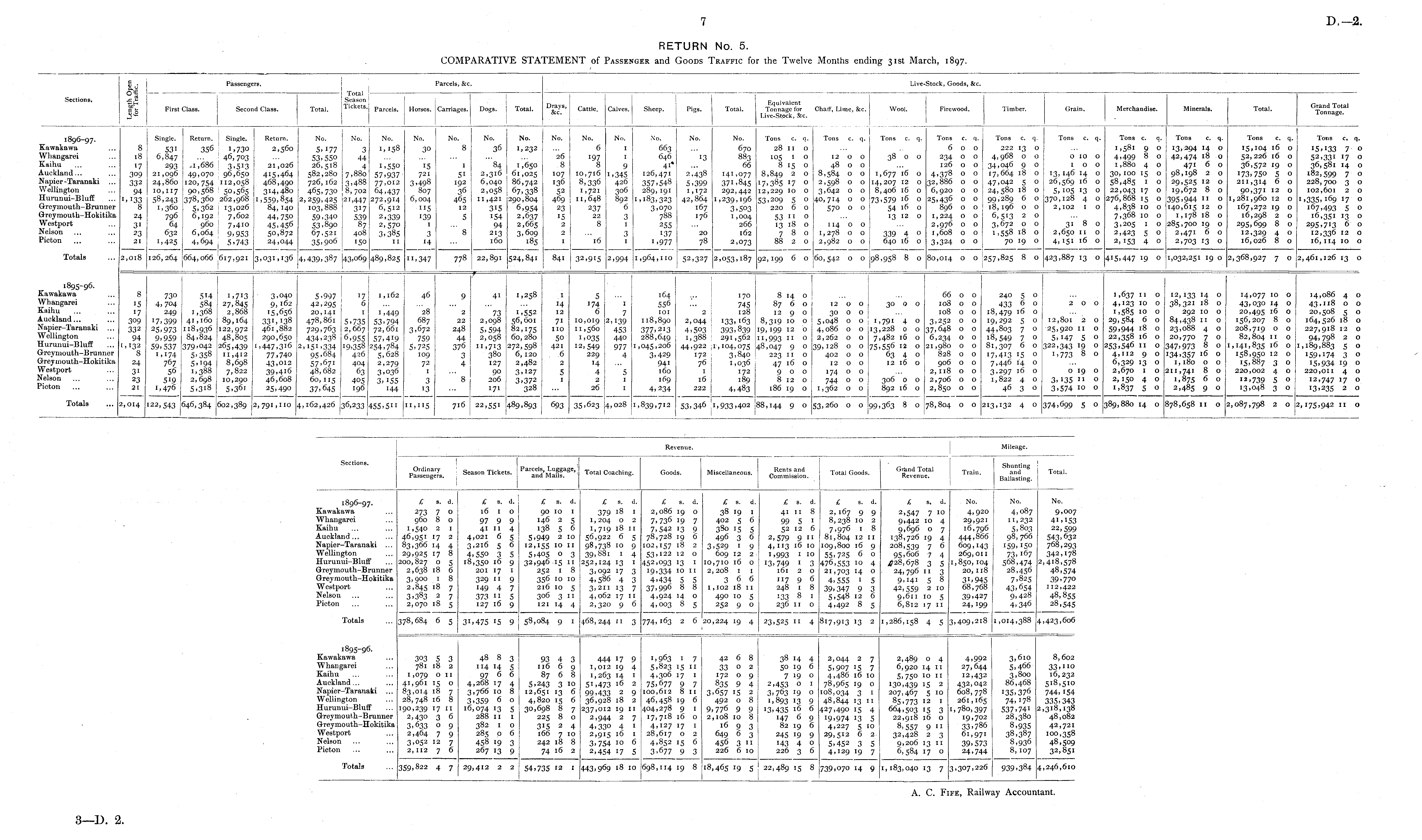 RETURN No. 5. COMPARATIVE STATEMENT of Passenger and Goods Traffic for the Twelve Months ending 31st March, 1897.