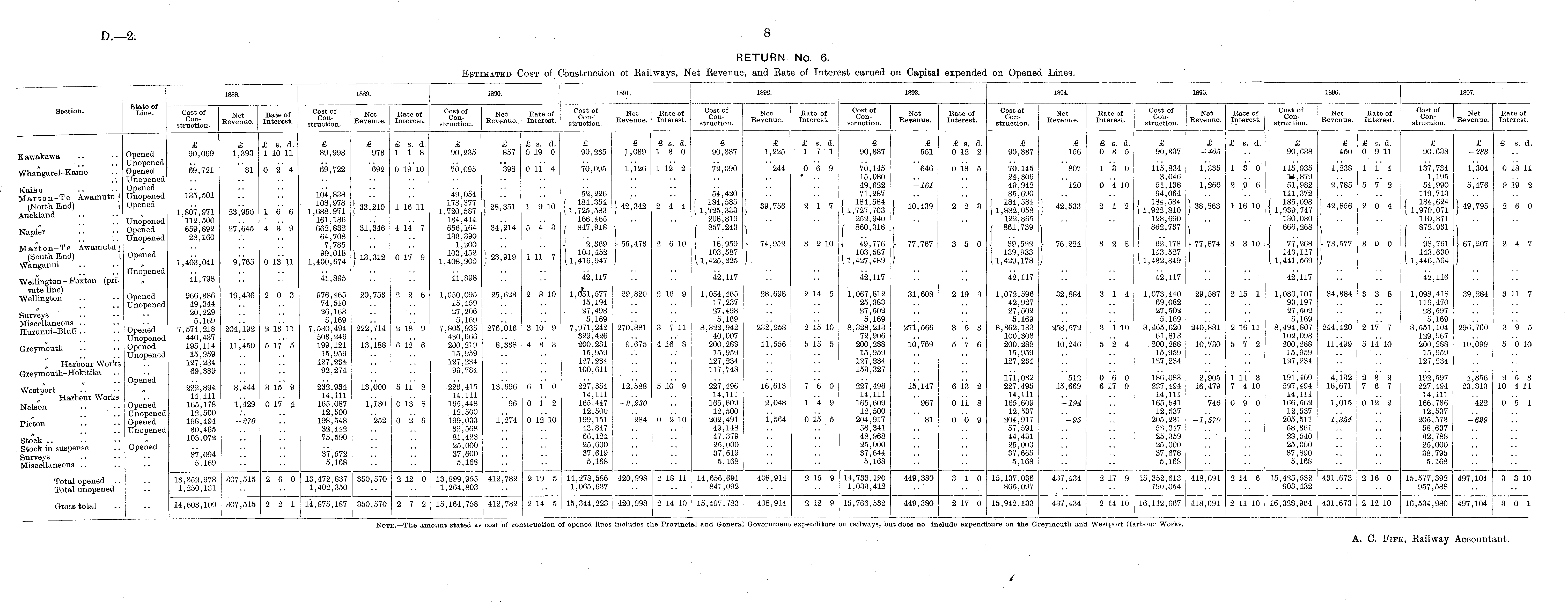 RETURN No. 6. Estimated Cost of Construction of Railways, Net Revenue, and Rate of Interest earned on Capital expended on Opened Lines.