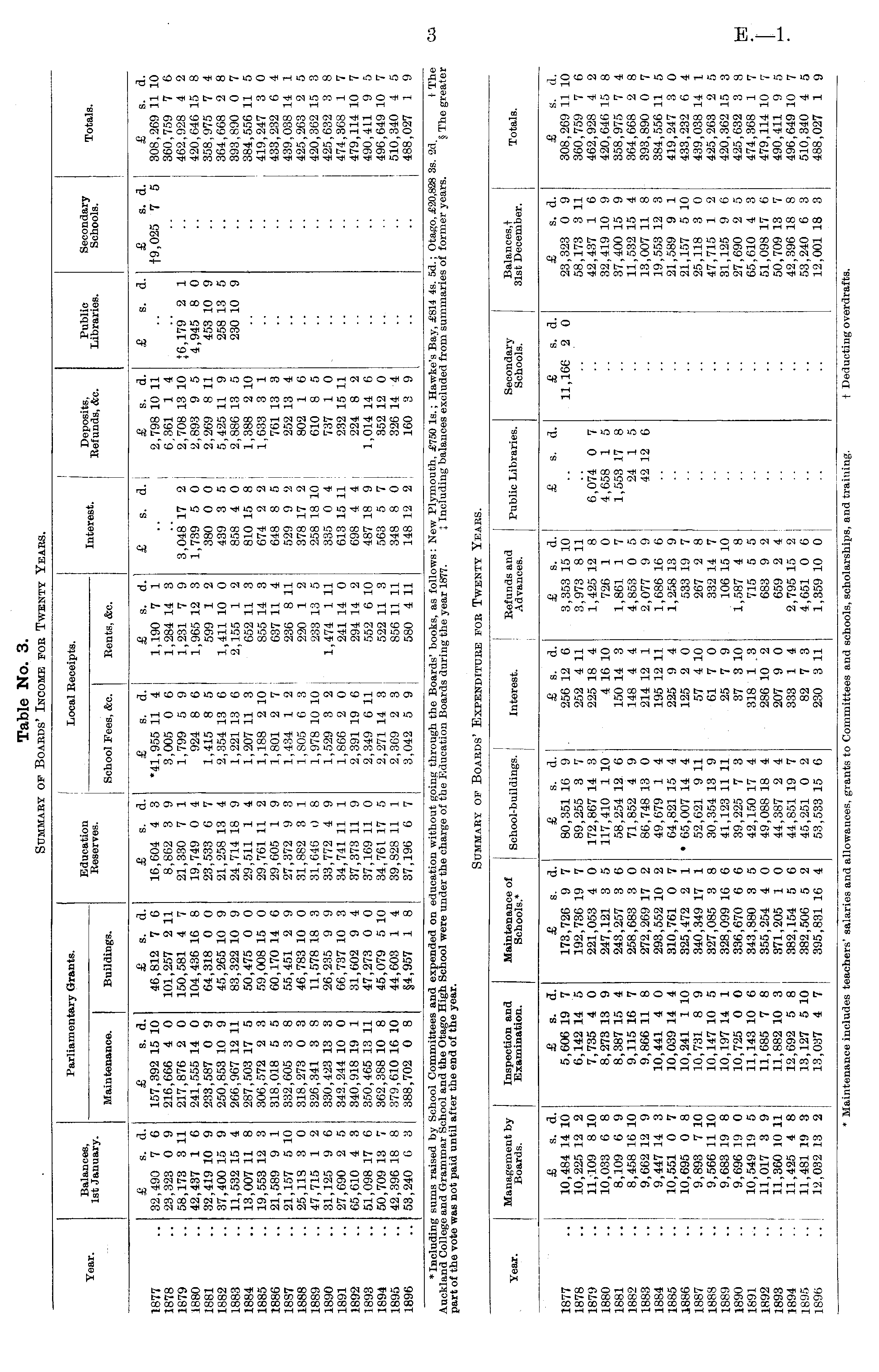 Year. Parliamentary Grants. Local Receipts. it. I Deposits, Refunds, &c. Public Libraries. Secondary Schools. Totals. 1st January. Eeserves. Maintenance. Buildings. School Fees, &c. Rents, &c. 1877 1878 1879 1880 1881 1882 1883 1884 1885 1886 1887 1888 1889 1890 1891 1892 1893 1894 1895 1896 £ s. d. 32,490 7 6 23,323 0 9 58,173 3 11 42,437 1 6 32,419 10 9 37,400 15 9 11,532 15 4 13,007 11 8 19,553 12 3 21,589 9 1 21,157 5 10 25,113 3 0 47,715 1 2 31,125 9 6 27,690 2 5 65,610 4 3 51,098 17 6 50,709 13 7 42,396 18 8 53,240 6 3 £ s. d. 157,392 15 10 216,666 4 0 217,876 2 0 241,555 14 0 233,587 0 9 250,853 10 9 266,967 12 11 287,503 17 5 306,572 2 3 318,018 5 5 332,605 3 8 318,273 0 3 326,341 3 8 330,423 13 3 342,244 10 0 340,918 19 1 350,465 13 11 362,388 10 8 379,610 16 10 388,702 0 8 £ s. d. 46,812 7 6 101,257 2 11 150,581 4 7 104,436 16 8 64,318 0 0 45,265 10 9 83,322 10 9 50,475 0 0 59,008 15 0 60,170 14 6 55,451 2 9 46,783 10 0 11,578 18 3 26,235 9 9 66,737 10 3 31.602 9 4 47,273 0 0 45,079 5 10 44.603 1 4 §4,957 1 8 £ s. d. 16.604 4 3 8,862 3 9 21,330 7 1 19,749 0 4 23,533 6 7 21,258 13 4 24,714 18 9 29,511 1 4 29,761 11 2 29.605 1 9 27.372 9 3 31,882 3 1 31,646 i) 8 33,772 4 9 34,741 11 1 37.373 11 9 37,169 11 0 34,761 17 5 39,828 11 1 37,196 6 7 £ s. d. *41,955 11 4 3,005 0 6 1,799 5 9 924 8 6 1,415 8 5 2,354 13 6 1,221 13 6 1,207 11 3 1,188 2 10 1,801 2 7 1,434 1 2 1,805 6 3 1,978 10 10 1,529 3 2 1,866 2 0 2,391 19 6 2,349 6 11 2,271 14 3 2,369 2 3 3,042 5 9 | £ s. d. 1,190 7 1 1,284 14 3 1,231 7 9 1,965 12 3 599 1 2 1,411 10 0 2,155 1 2 652 11 3 855 14 3 637 11 4 236 8 11 220 1 2 233 13 5 1,474 1 11 241 14 0 294 14 2 552 6 10 522 11 3 856 11 11 580 4 11 £ s. d. 3,04817 2 1,739 5 0 380 0 0 439 3 5 858 4 0 810 15 8 674 2 2 648 8 5 529 9 2 378 17 2 258 18 10 335 0 4 613 15 11 698 4 4 487 18 9 563 5 7 348 8 0 148 12 2 £ s. d. 2,798 10 11 6 361 1 4 2,708 13 10 2,893 9 5 2,269 8 11 5,425 11 9 2,886 13 5 1,388 2 10 1,633 3 1 761 13 3 252 13 4 802 1 6 610 8 5 737 1 0 232 15 11 224 8 2 1,014 14 6 352 12 0 326 14 4 160 3 9 £ s. d. +6,179 2 1 4,945 8 0 453 10 9 258 13 5 230 10 9 £ s. d. +9,025 7 5 s. 5 7 d. £ s. d. 5 308,269 11 10 360,759 7 6 462,928 4 2 420,646 15 8 358,975 7 4 364,668 2 8 393,890 0 7 384,556 11 5 419,247 3 0 433,232 6 4 439,038 14 1 425,263 2 5 420,362 15 3 425,632 3 8 474,368 1 7 479,114 10 7 490,411 9 5 496,649 10 7 510,340 4 5 488,027 1 9 * Including sums raised by School Committees and expended on education without going through the Boards' books, as follows: New Plymouth, £750 Is.; Hawke's Bay, £814 4s. 5d.; Otago, £20,828 3s. 2d. i Th* Auckland College and Grammar School and the Otago High School were under the charge of the Education Boards during the year 1877. t Including balances excluded from summaries of former years. § The greatei part of the vote was not paid until after the end of the year.