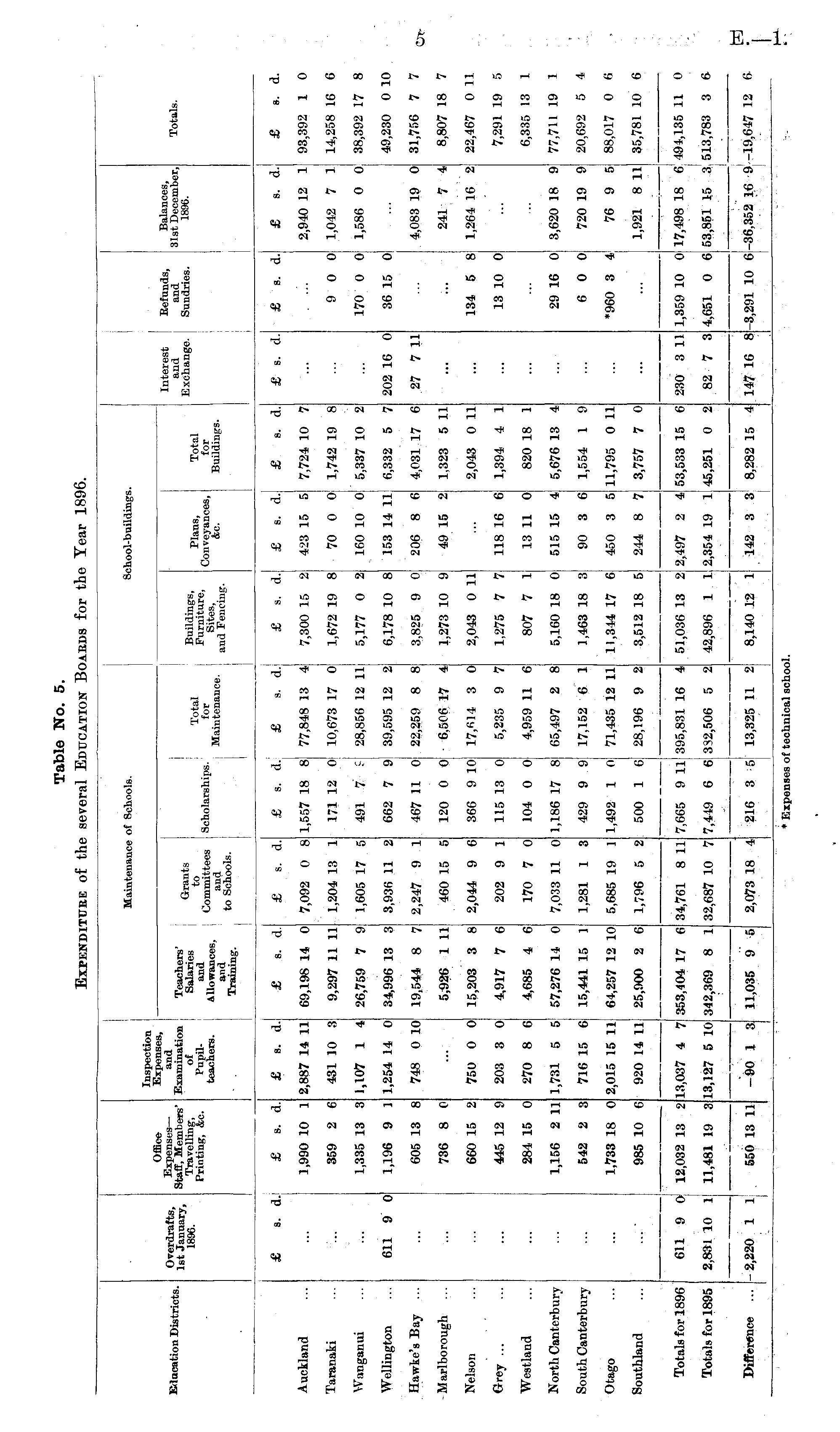 Table No. 5. Expenditure of the several Education Boards for the Year 1896.