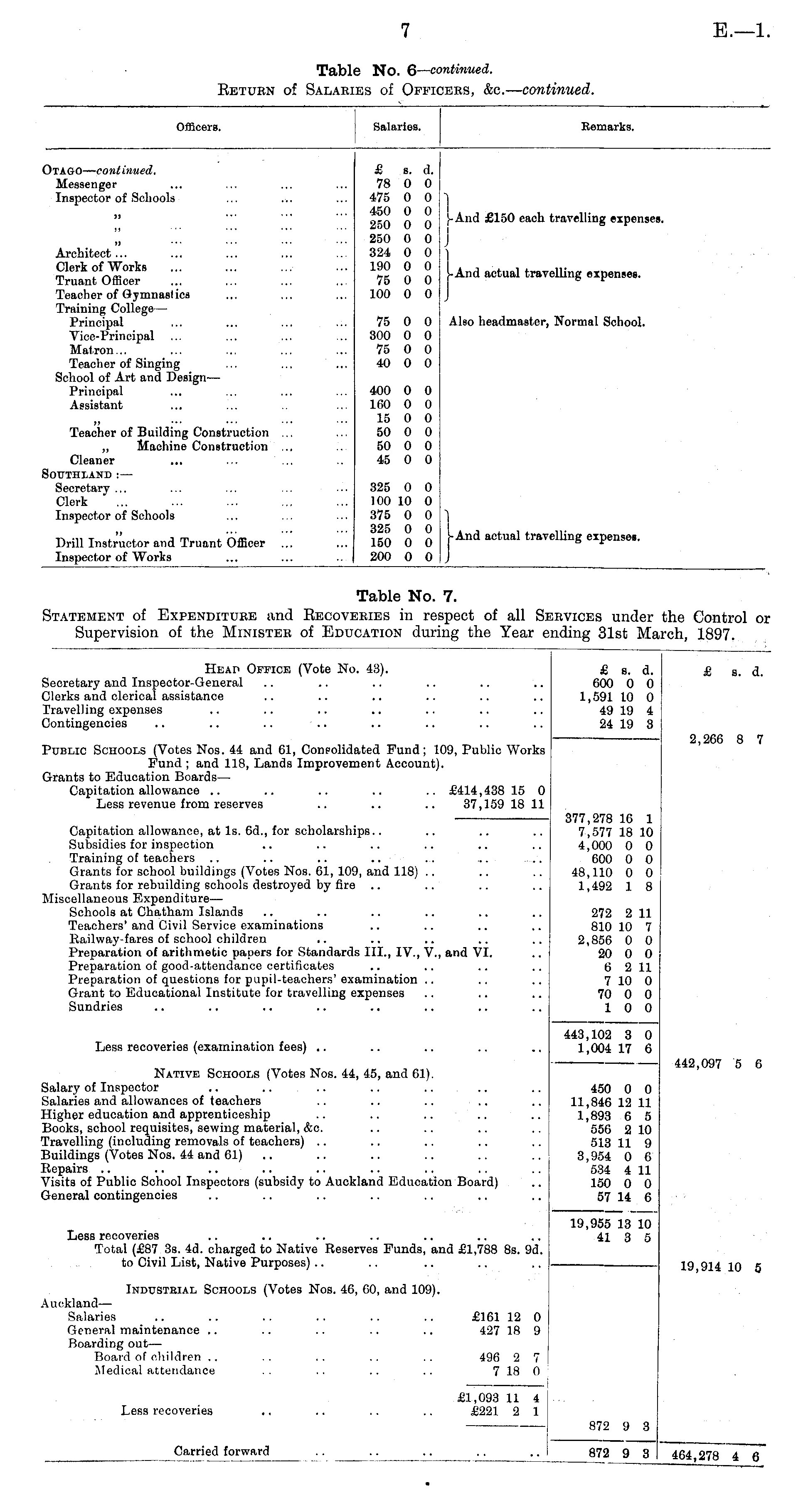 Table No. 7. Statement of Expenditure and Recoveries in respect of all Services under the Control or Supervision of the Minister of Education during the Year ending 31st March, 1897.