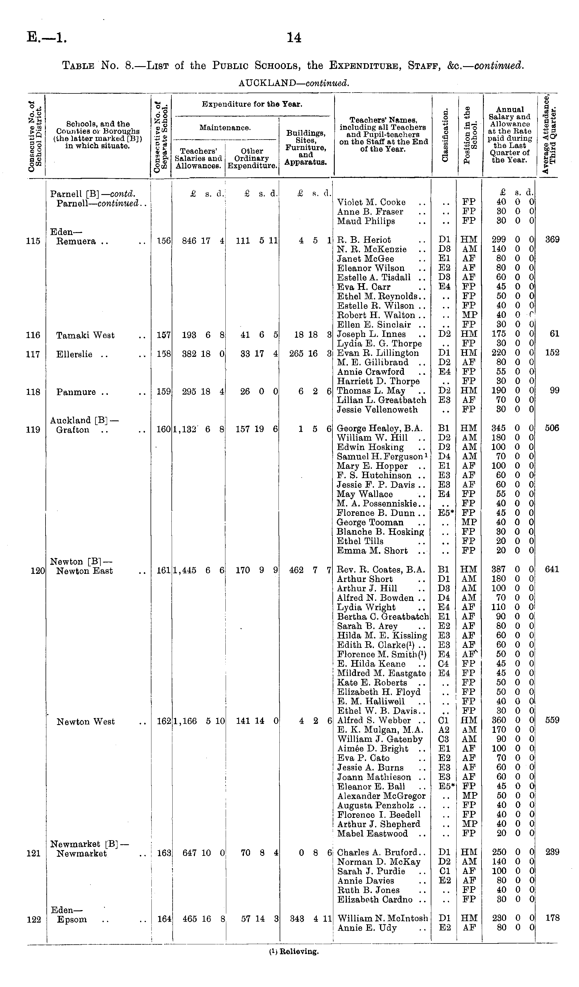 Table No. 8.—List of the Public Schools, the Expenditure, Staff, &c.— continued. AUCKLAND—continued.