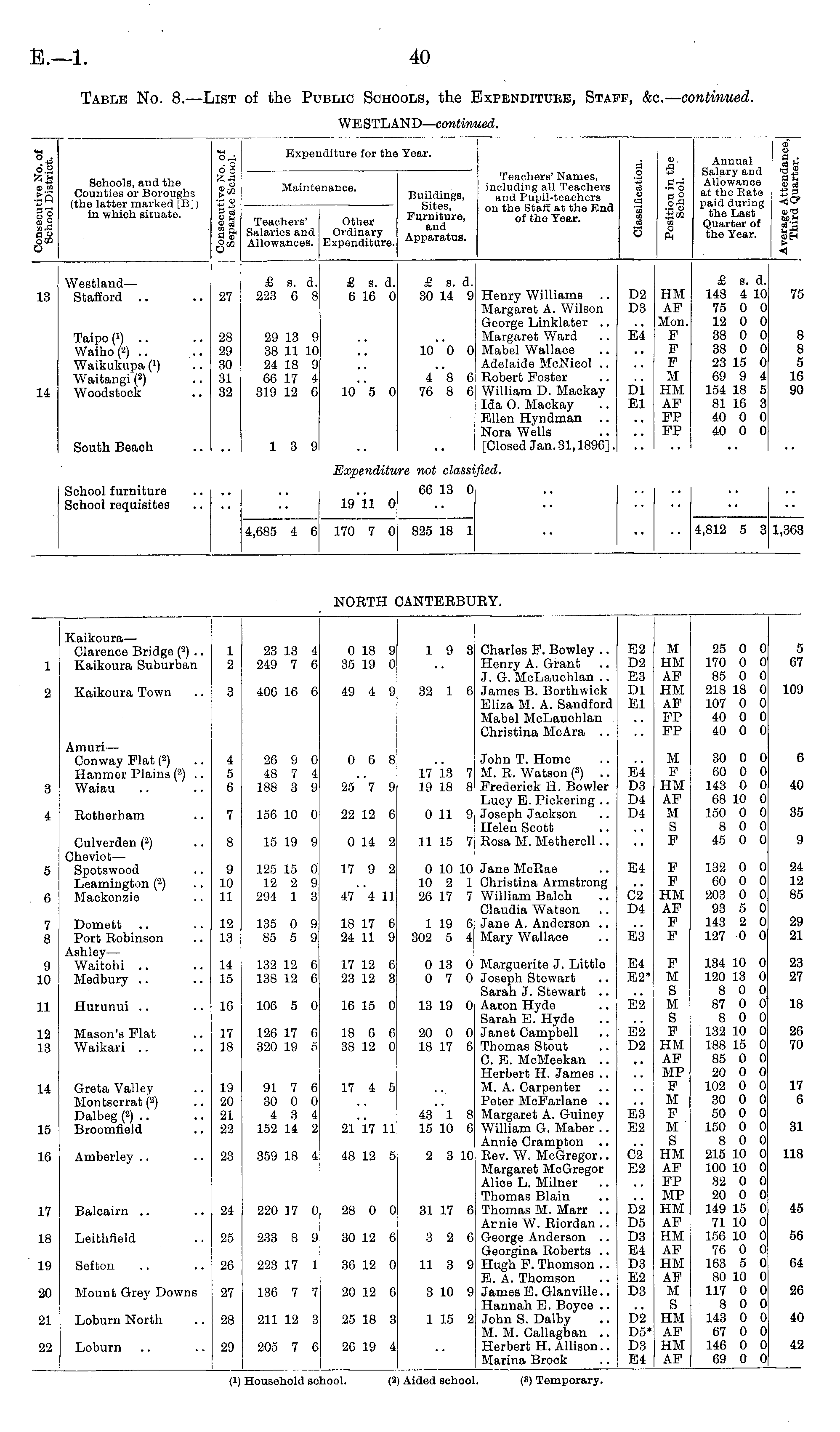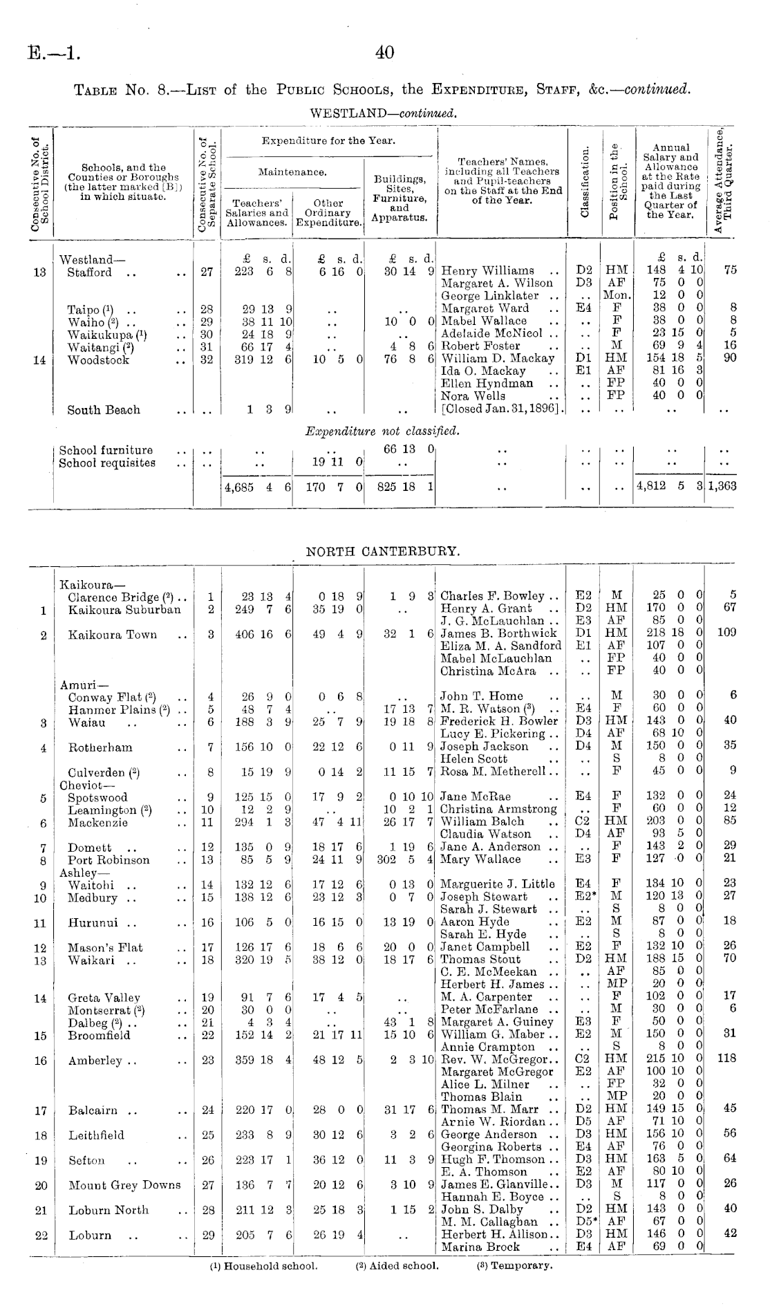 Table No. 8. —List of the Public Schools, the Expenditure, Staff, &c.— continued. WESTLAND— continued.