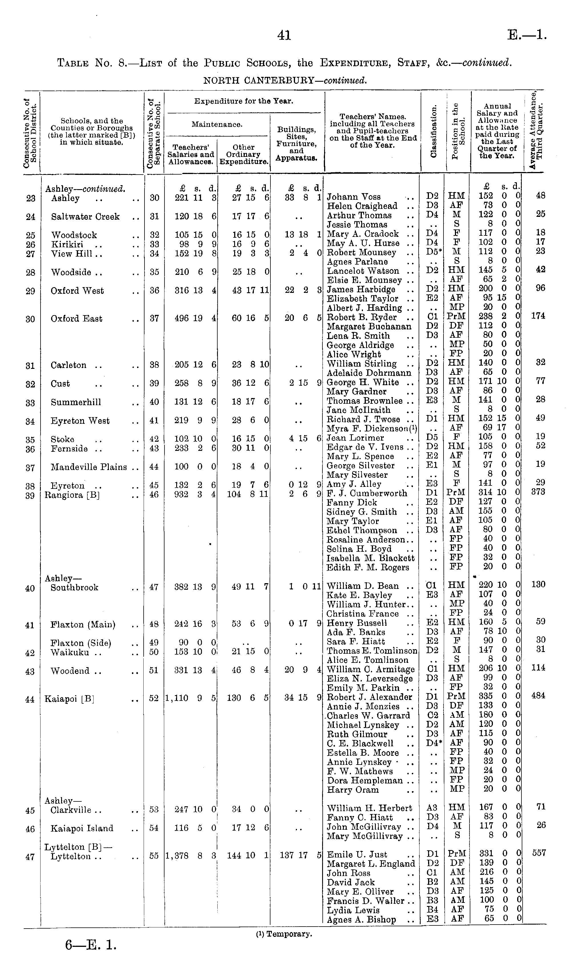 Table No. 8. —List of the Public Schools, the Expenditure, Staff, &c.— continued. NORTH CANTERBURY— continued.