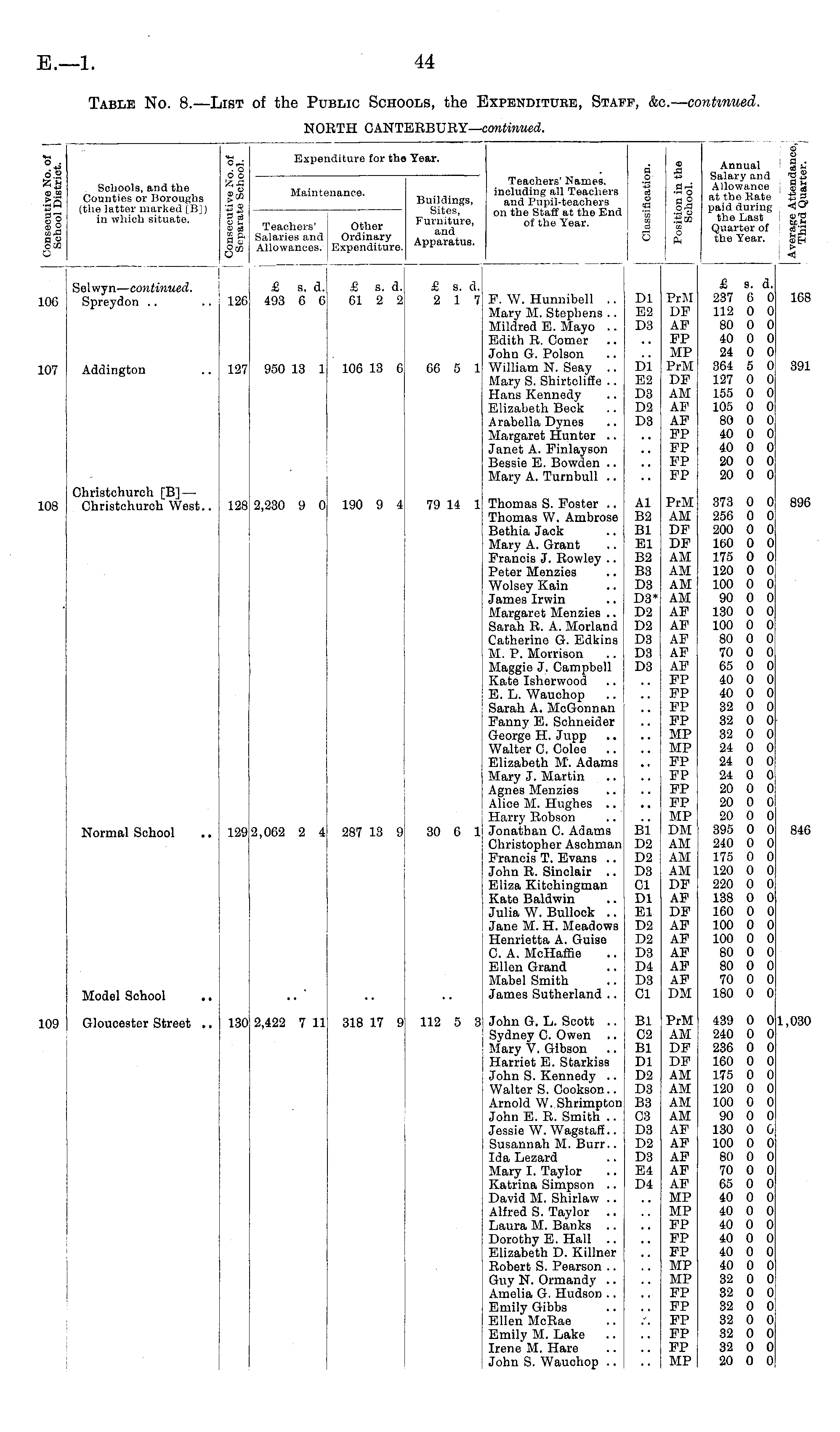 Table No. 8.—List of the Public Schools, the Expenditure, Staff, &c.— continued. NORTH CANTERBURY— continued.