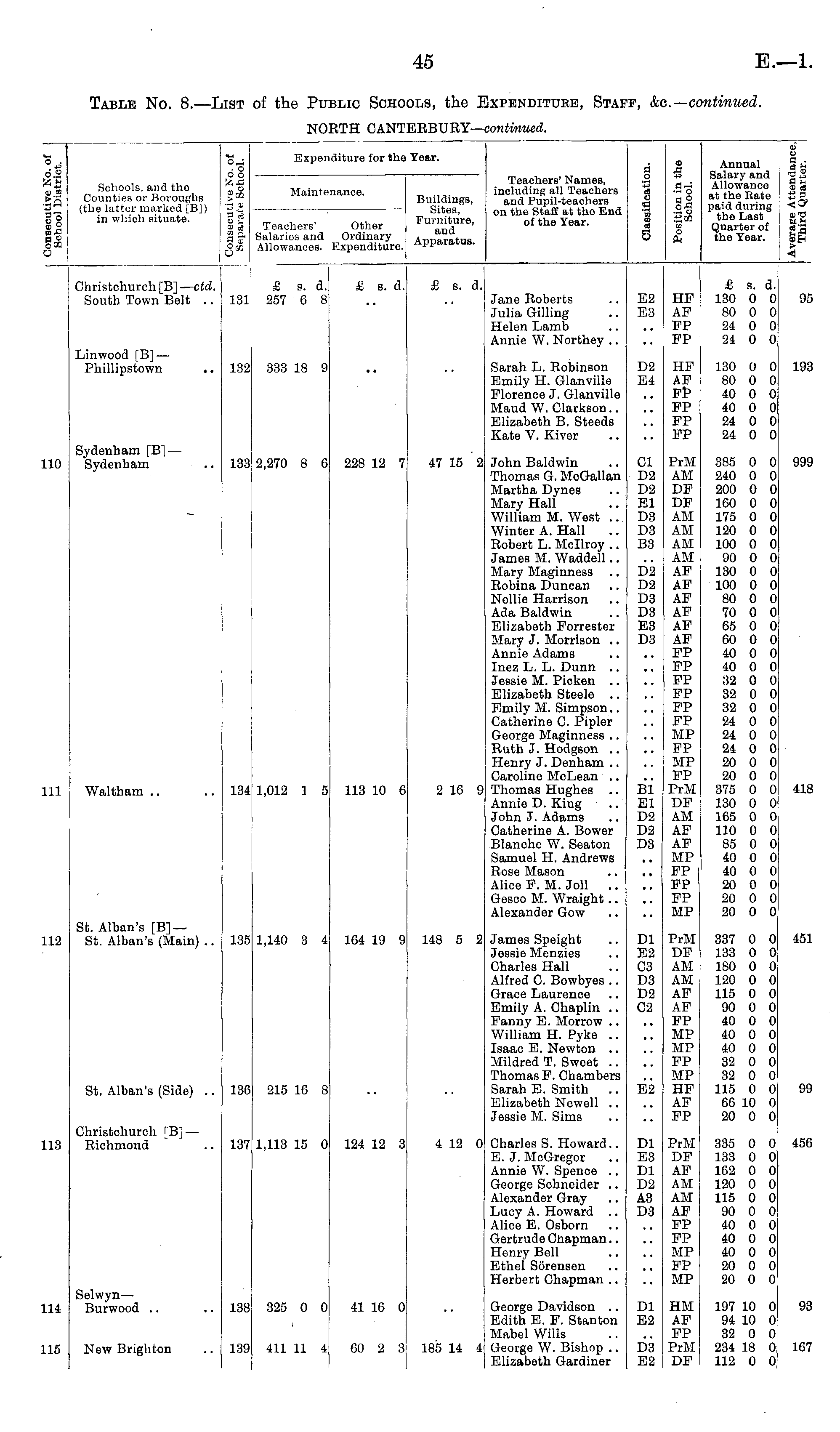 Table No. 8.—List of the Public Schools, the Expenditure, Staff, &c.— continued. NORTH CANTERBURY— continued.