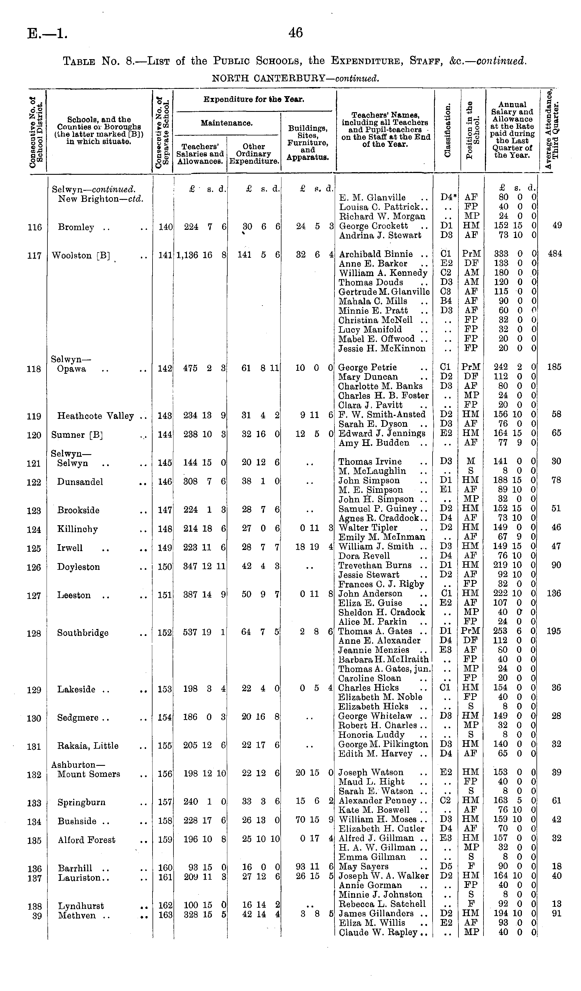 Table No. 8.—List of the Public Schools, the Expenditure, Staff, &c.— continued. NORTH CANTERBURY— continued.