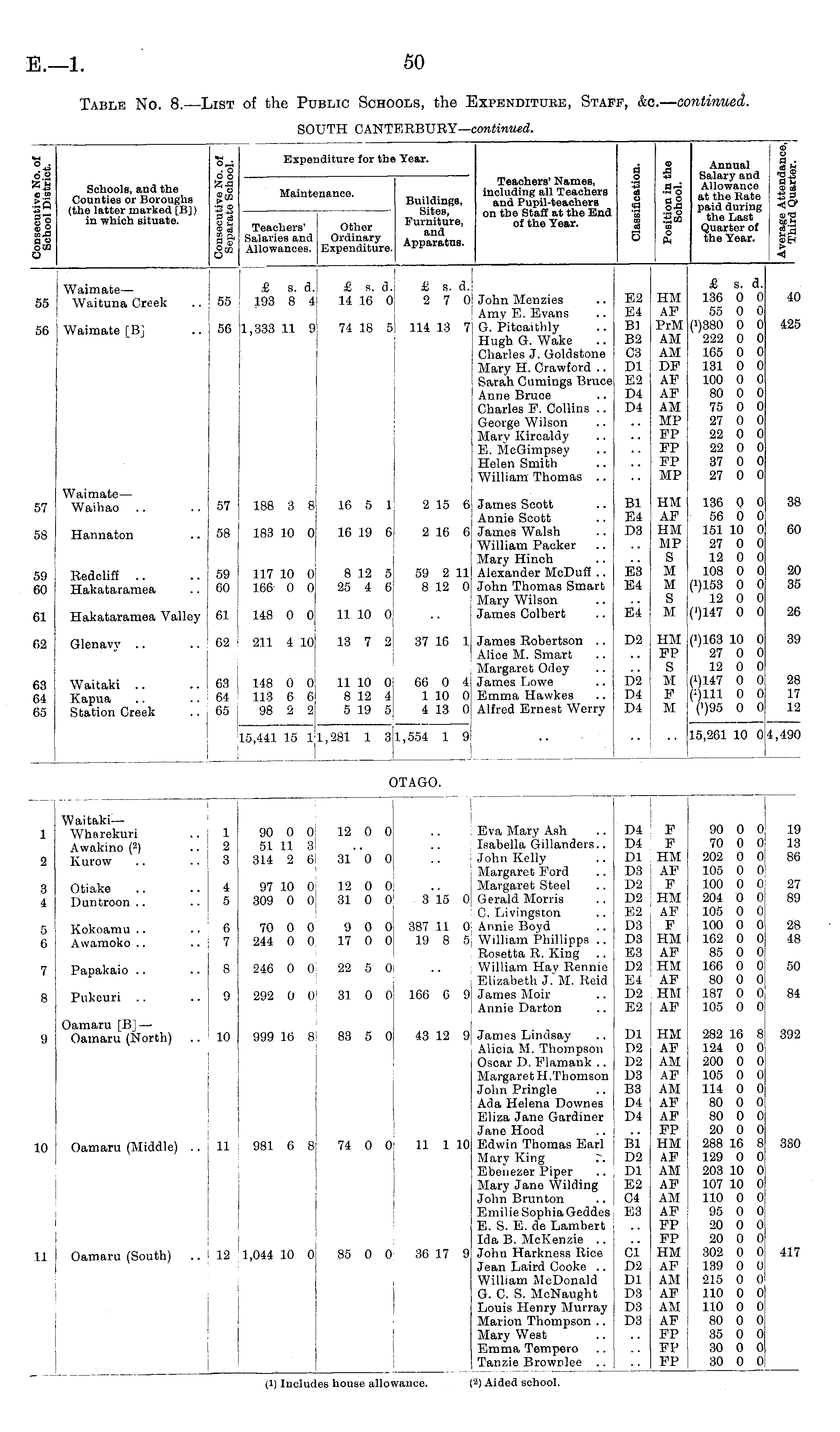 Table No. 8.—List of the Public Schools, the Expenditure, Staff, &c.— continued. SOUTH CANTERBURY— continued.