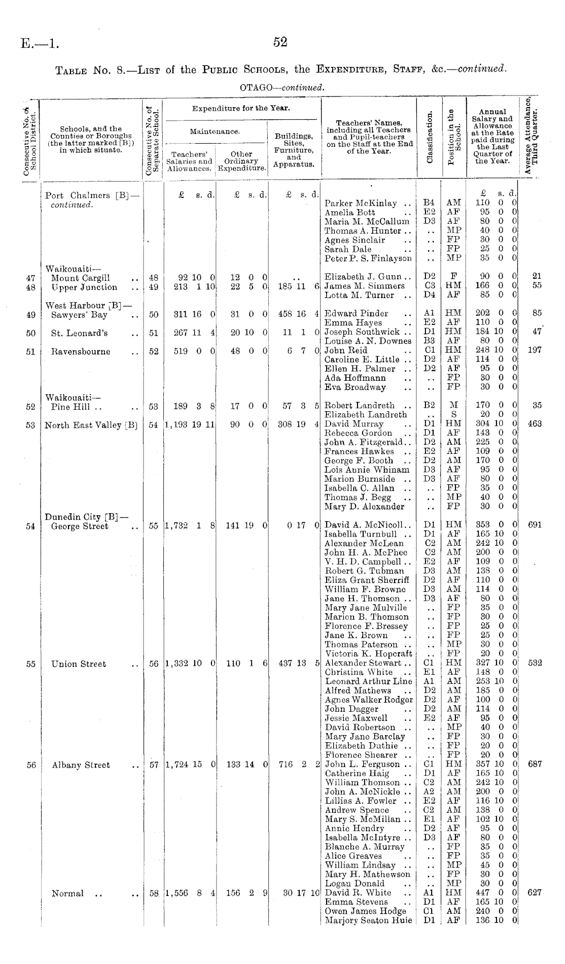 Table No. 8.—List of the Public Schools, the Expenditure, Staff, &c.— continued. OTAGO — continued.
