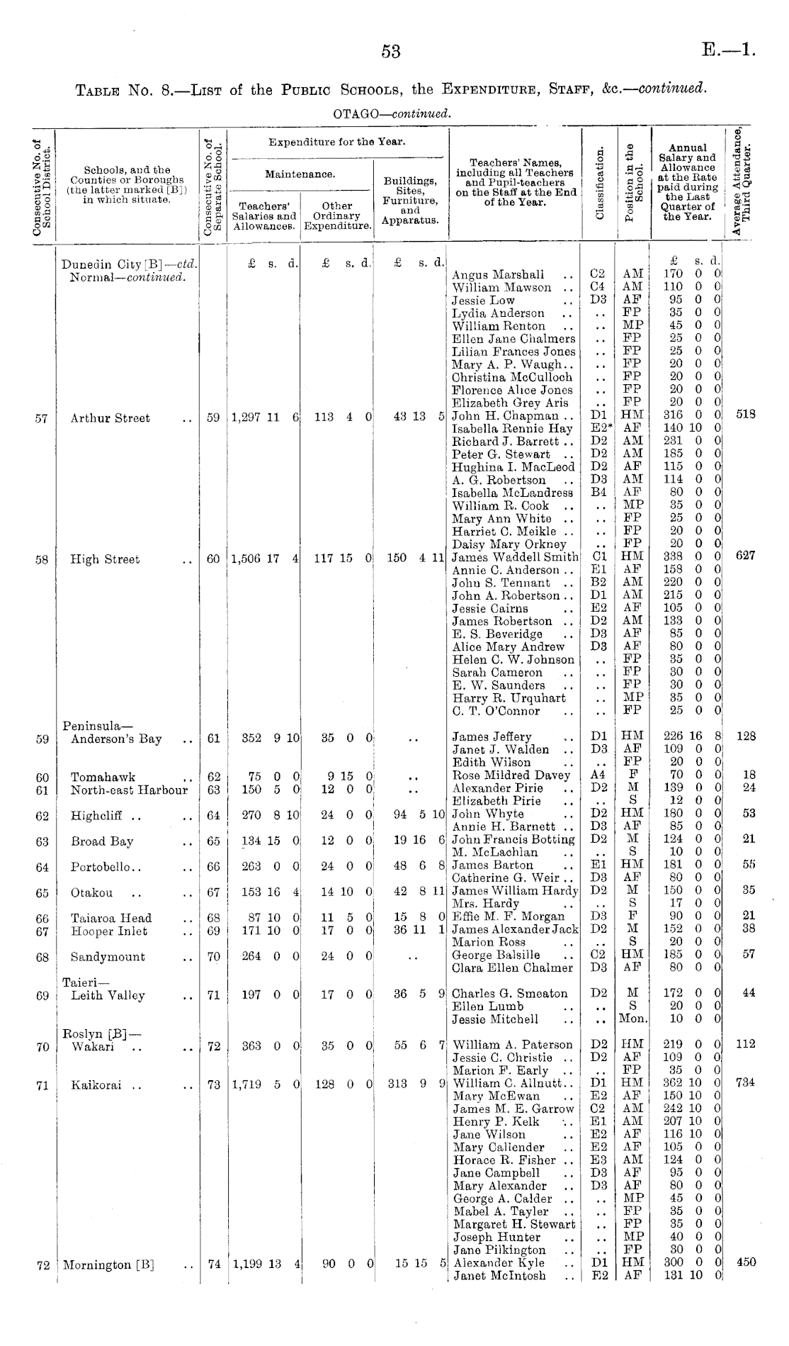 Table No. 8. —List of the Public Schools, the Expenditure, Staff, &c. — continued. OTAGO—continued.