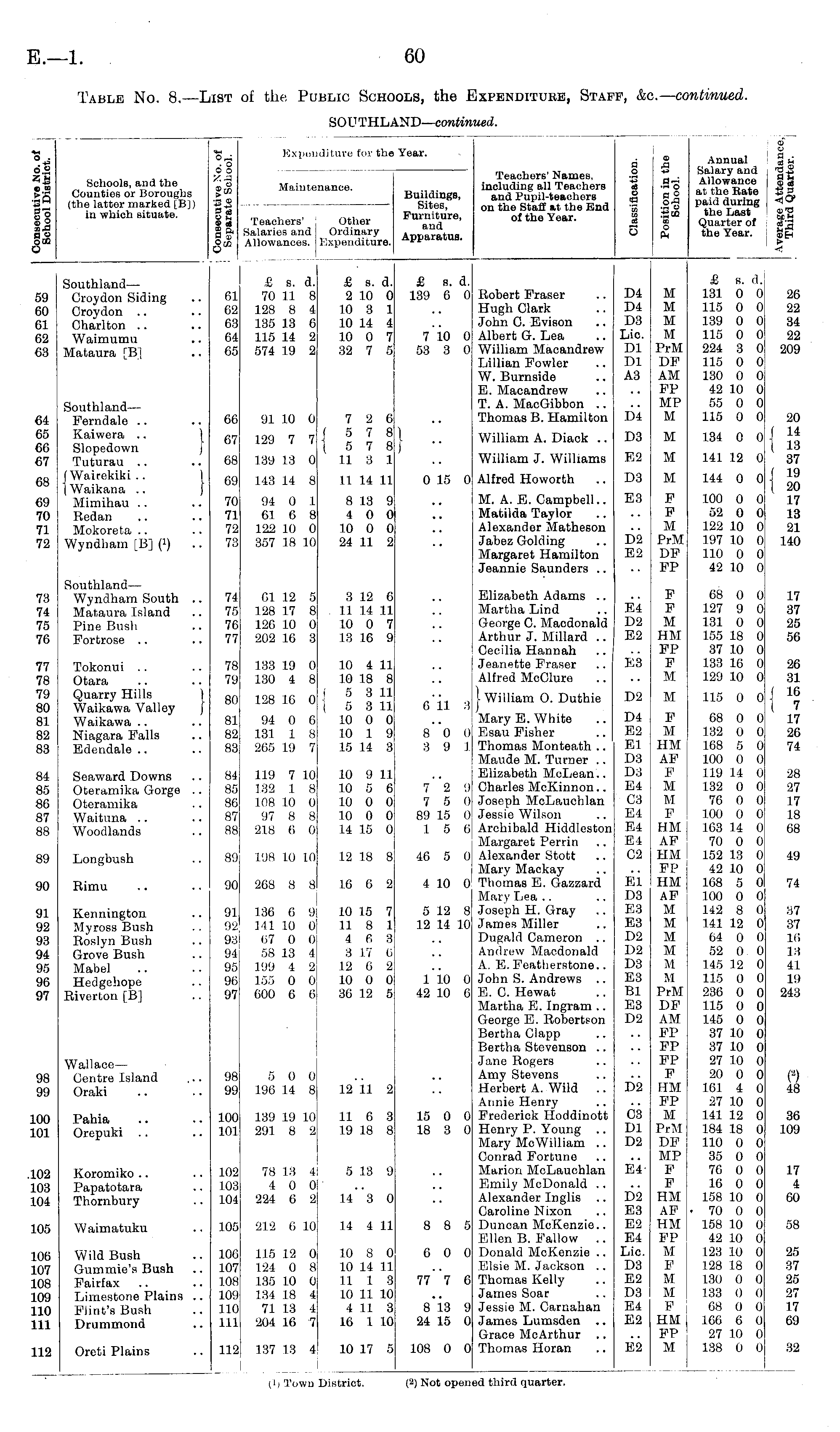 Table No. 8.—List of the Public Schools, the Expenditure, Staff, &c.— continued. SOUTHLAND— continued.