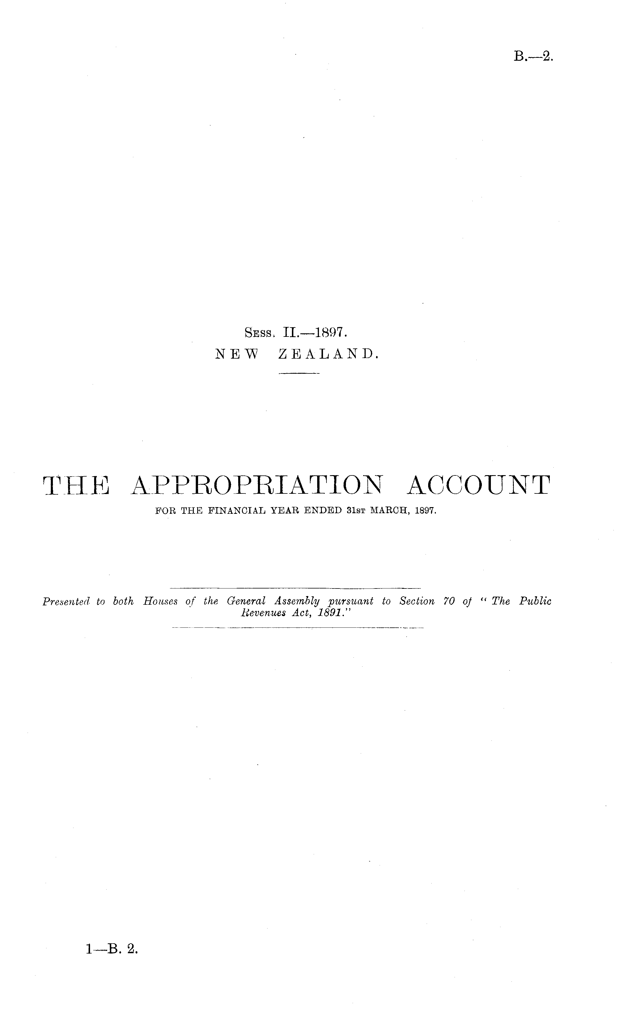 THE APPROPRIATION ACCOUNT FOR THE FINANCIAL YEAR ENDED 31st MARCH, 1897.