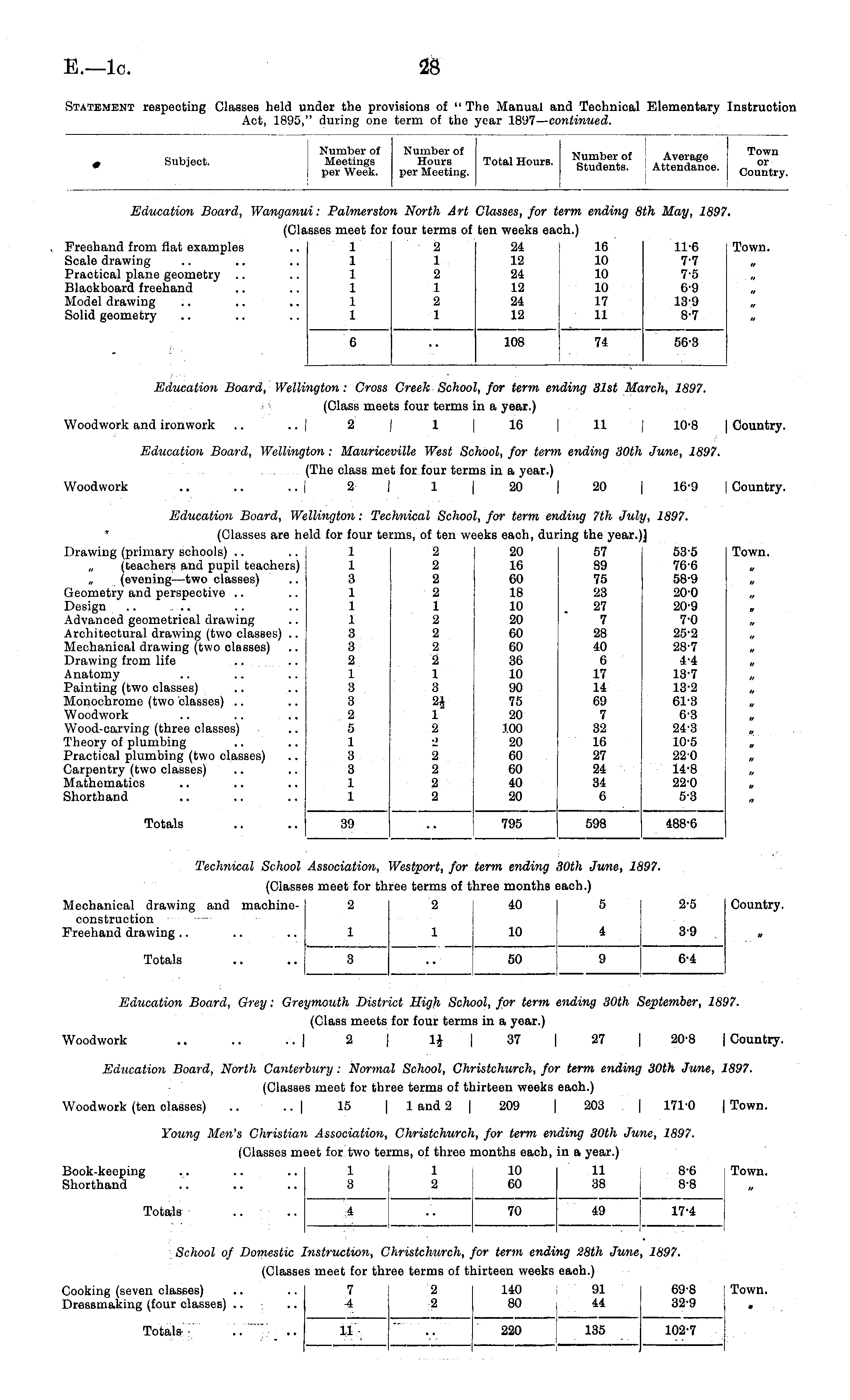 Statement respecting Classes held under the provisions of "The Manual and Technical Elementary Instruction Act, 1895," during one term of the year 1897— continued.