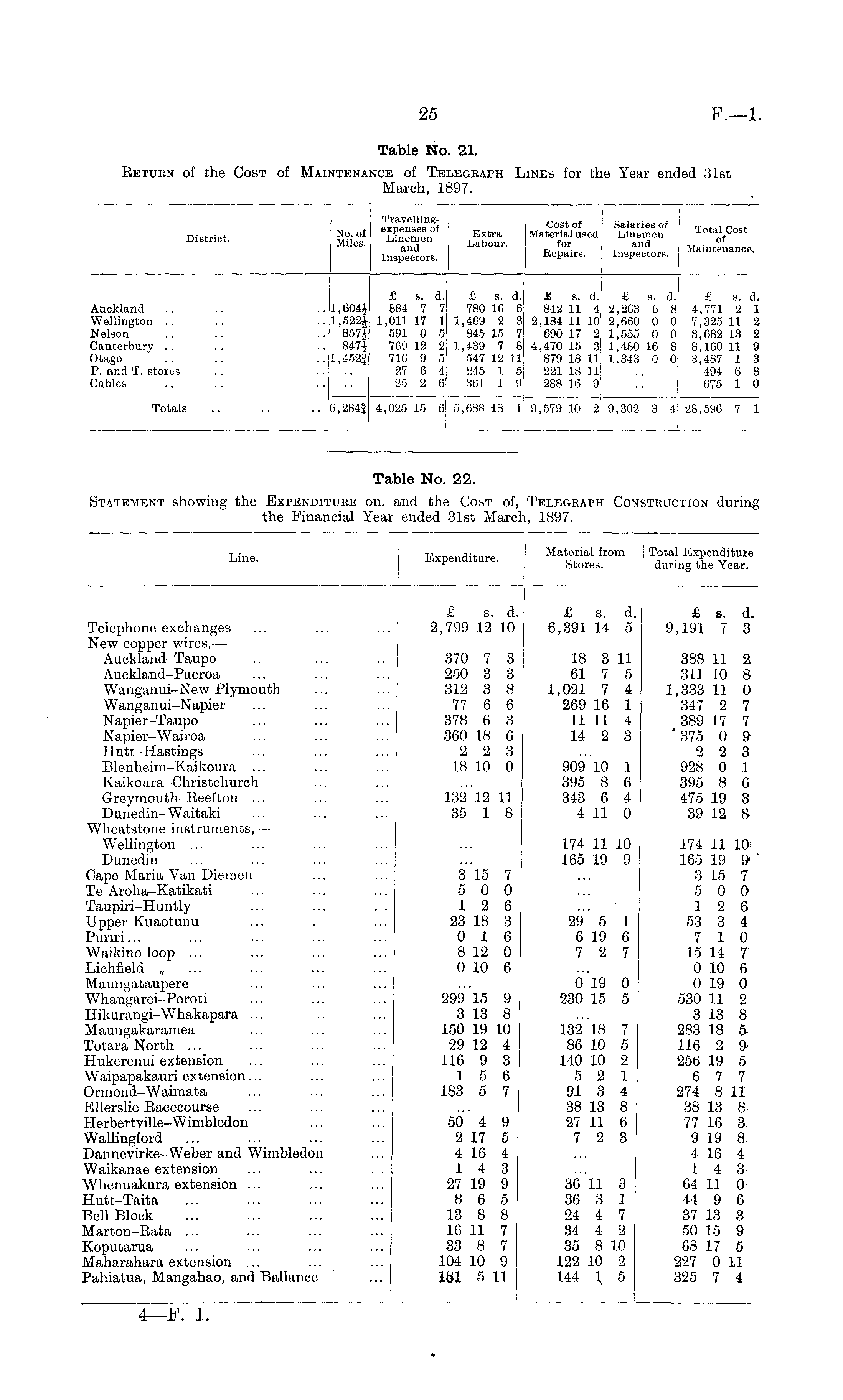 Table No. 21. Return of the Cost of Maintenance of Telegraph Lines for the Year ended 31st March, 1897.