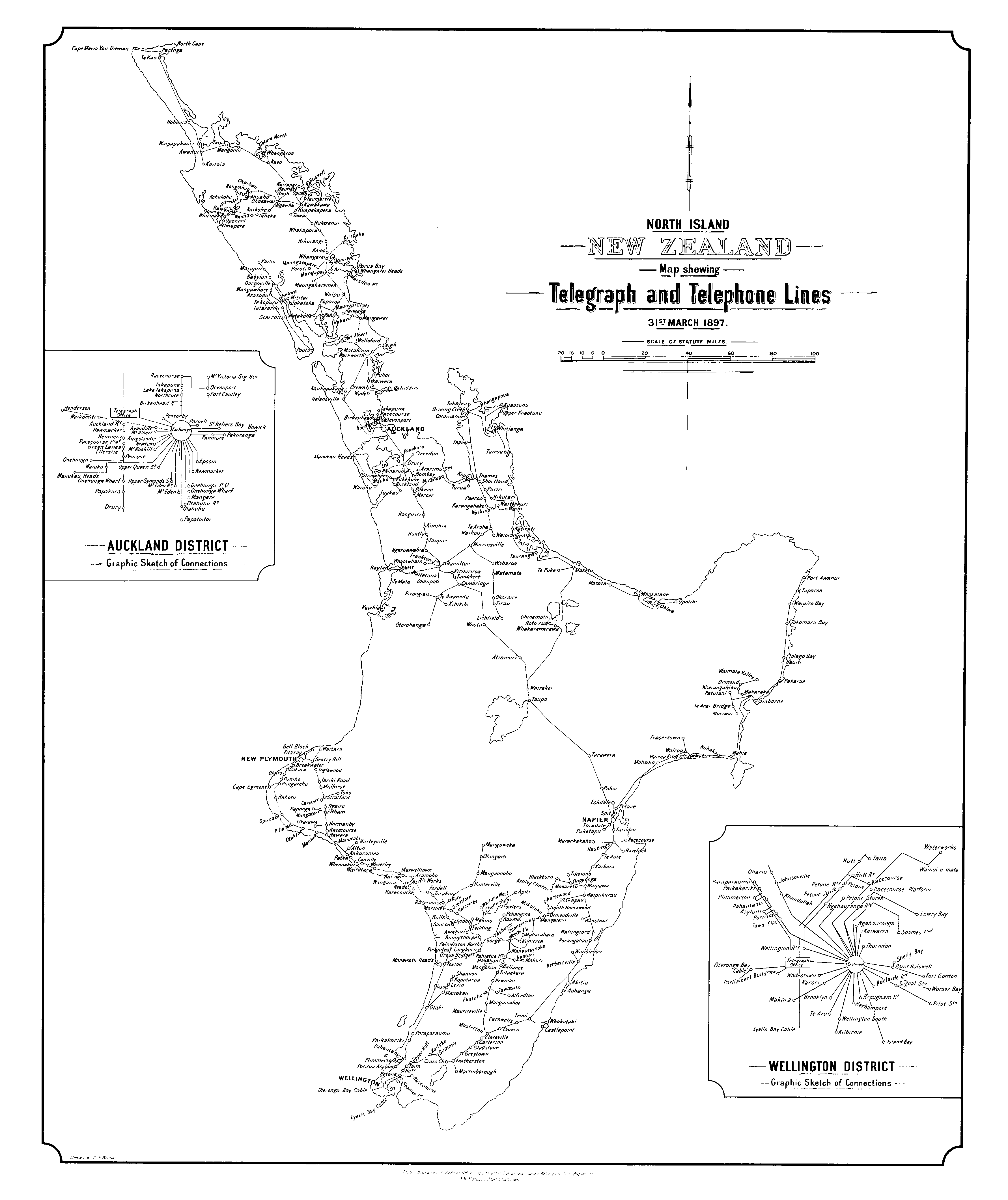 NORTH ISLAND NEW ZEALAND Map shewing Telegraph and Telephone Lines 31st MARCH 1897.