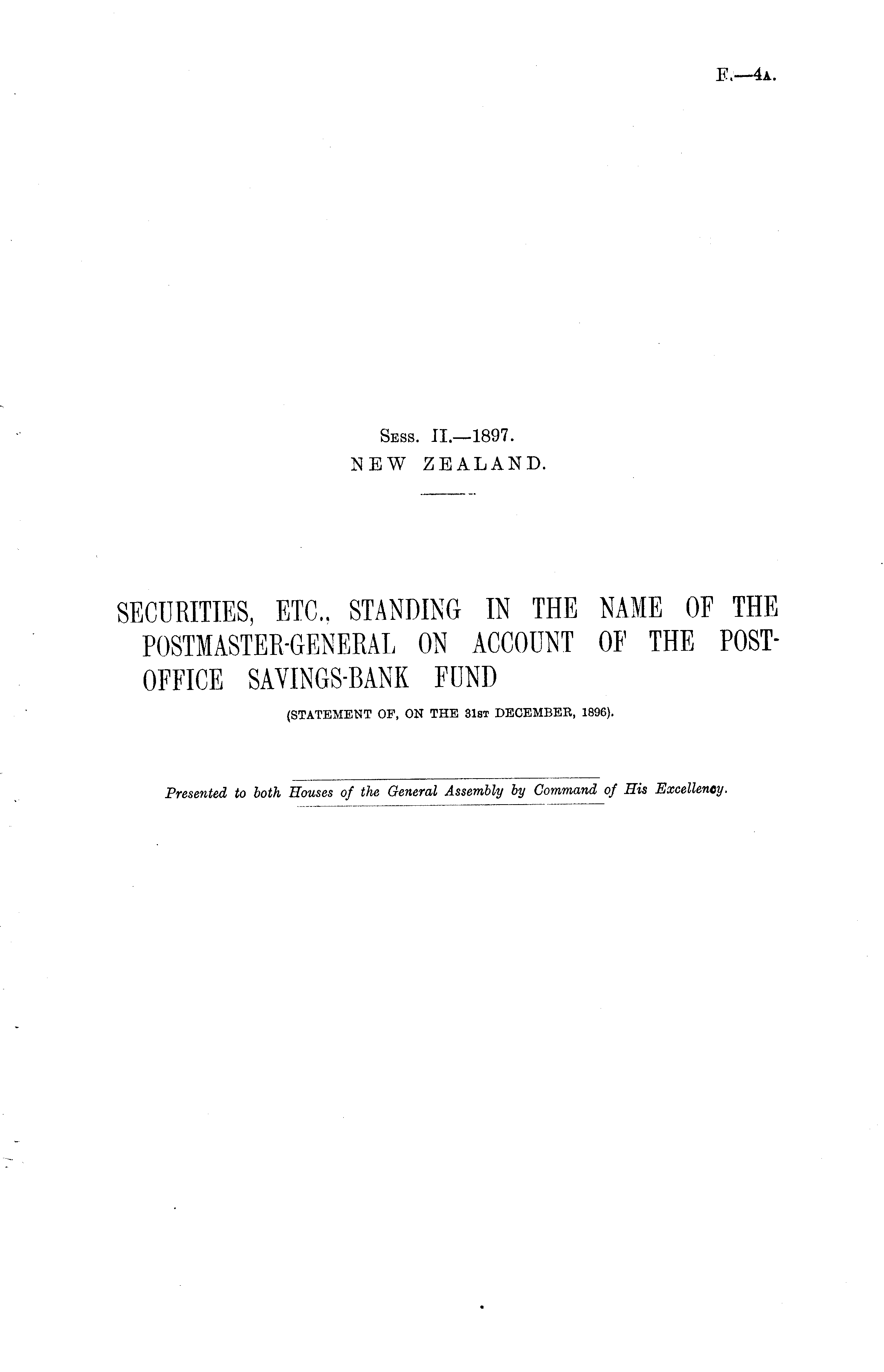 SECURITIES, ETC., STANDING IN THE NAME OF THE POSTMASTER-GENERAL ON ACCOUNT OF THE POSTOFFICE SAVINGS-BANK FUND (STATEMENT OF, ON THE 31st DECEMBER, 1896).