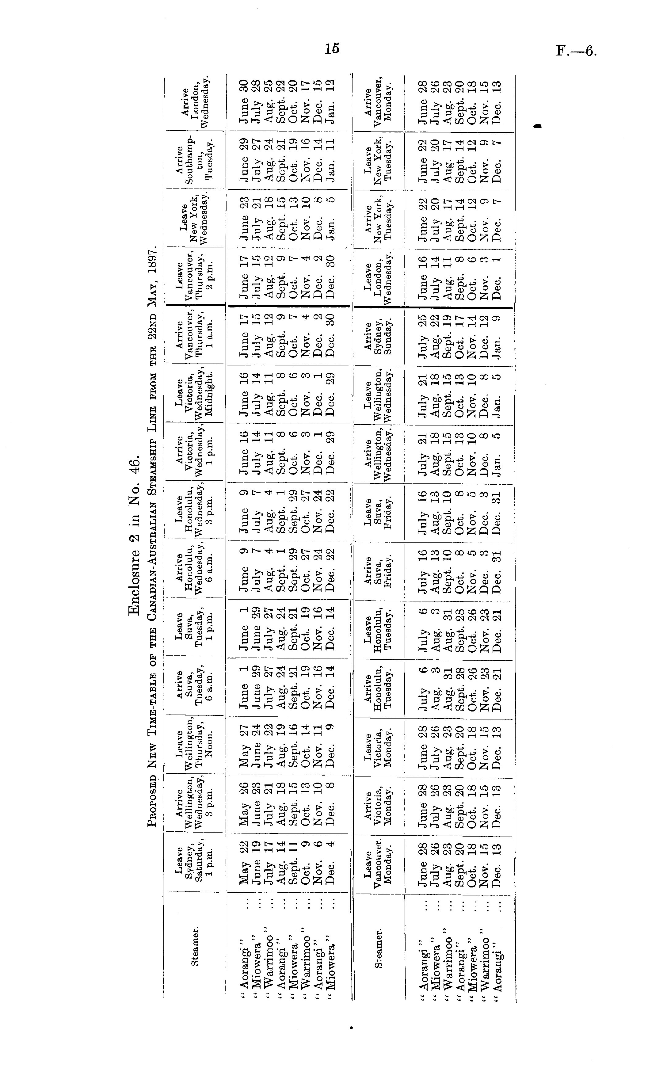 Enclosure 2 in No. 46. Proposed New Time-table of the Canadian-Australian Steamship Line from the 22nd May, 1897.