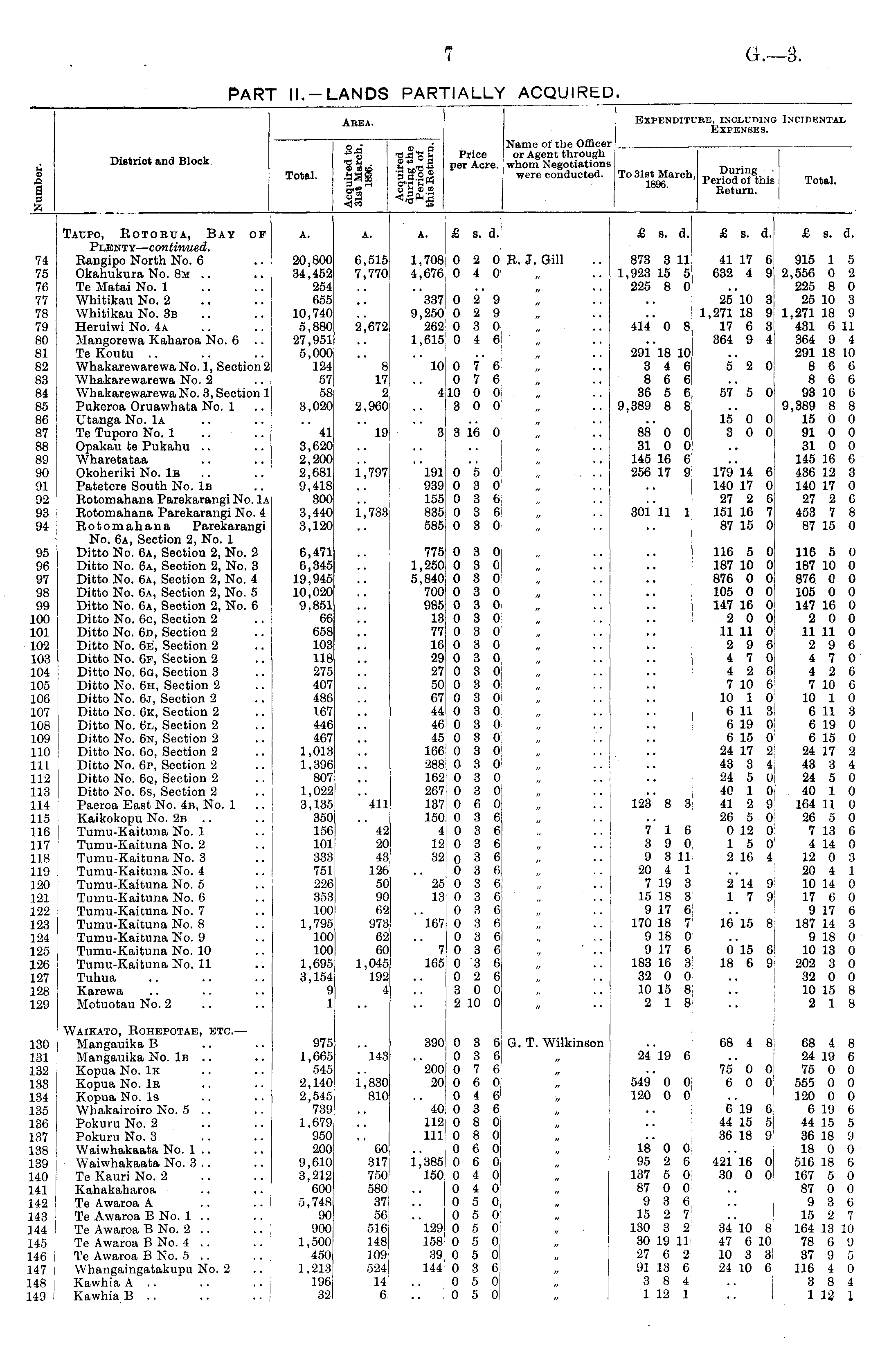 i s> 1 District and Block Total. Area. H I .oil's 5 m ini Price per Acre. Expenditure, including Incidental Expenses. Name of the Officer or Agent through whom Negotiations were conducted. To31st March, „ v url "6, . loop, Period of this Total. im - Eeturn. I During ' Period of thii Eeturn. I ' Total. 74 75 76 77 78 79 80 81 82 83 84 85 86 87 88 89 90 91 92 93 94 95 96 97 98 99 100 101 102 103 104 105 106 107 108 109 110 111 112 113 114 115 116 117 118 119 120 121 122 123 124 125 126 127 128 129 Taupo, Eotoeua, Bay of Plenty— continued. Rangipo North No. 6 Okahukura No. 8m .. Te Matai No. 1 Whitikau No. 2 Whitikau No. 3b Heruiwi No. 4a .. Mangorewa Kabaroa No. 6 Te Koutu .. WhakarewarewaNo. 1, Section 2 1 Whakarewarewa No. 2 .. i WhakarewarewaNo. 3, Section 1 Pukeroa Oruawhata No. 1 Utanga No. Iα Te Tuporo No. 1 Opakau fce Pukahu .. Wharetataa Okoheriki No. Iβ Patetere South No. Iβ Rotomahana Parekarangi No. Iα Rotomahana Parekarangi No. 4 Rotomahana Parekarangi No. 6a, Section 2, No. 1 Ditto No. 6a, Section 2, No. 2 Ditto No. 6a, Section 2, No. 3 Ditto No. 6a, Section 2, No. 4 Ditto No. 6a, Section 2, No. 5 Ditto No. 6a, Section 2, No. 6 Ditto No. 6c, Section 2 Ditto No. 6d, Section 2 Ditto No. 6e, Section 2 Ditto No. 6f, Section 2 Ditto No. 6g, Section 3 Ditto No. 6h, Section 2 Ditto No. 6j, Section 2 Ditto No. 6k, Section 2 Ditto No. 6l, Section 2 Ditto No. 6n, Section 2 Ditto No. 6o, Section 2 Ditto No. 6p, Section 2 Ditto No. 6q, Section 2 .. j Ditto No. 6s, Section 2 Paeroa East No. 4b, No. 1 Kaikokopu No. 2b ,. Tumu-Kaituna No. 1 Tumu-Kaituna No. 2 Tumu-Kaituna No. 3 Tumu-Kaituna No. 4 Tumu-Kaituna No. 5 Tumu-Kaituna No. 6 Tumu-Kaituna No. 7 Tumu-Kaituna No. 8 Tumu-Kaituna No. 9 Tumu-Kaituna No. 10 Tumu-Kaituna No. 11 Tuhua Karewa Motuotau No. 2 A. 20,800 34,452 254 655 10,740 5,880 27,951 5,000 124 57 58 3,020 41 3,620 2,200 2,081 9,418 300 3,440 3,120 6,471 6,345 19,945 10,020 9,851 66 658 103 118 275 407 486 167 446 467 1,013 1,396 807 1,022 3,135 350 156 101 333 751 226! 353 100 1,795 100 100 1,695 3,154 0 1 A. 6,515 7,770 2,672 8 2,960 19 797 ii V33| A. 1,708' 4,676 337! 9,250 262 1,615 io! i\ i 3 i 191 939 155 835. 585 775 1,250 5,840 700' 985 13| 77 16 2927j 50i 67! 44! 46 45 166 288 162 267 137! 150 4 12 32 £ s. d. ! 0 2 0 0 4 0 1 0 2 9 1 0 2 9: 10 3 0 1 0 4 6 1! 0 7 6! 0 7 6 10 0 0 '300 ! 3 16 0 0 5 0 0 3 0 : 0 3 6 0 3 6 0 3 0 0 3 0 i030 1 0 3 0 i , 0 3 0 1 0 3 0 ! 0 3 0, ■030 '030 iO3O 0 3 0 1 0 8 0 10 3 0 0 3 0 .030 1 0 3 0 10 3 0 10 3 0 ! 0 3 0 ■030] ■ 0 6 0! 10 3 6 0 3 6 10 3 6 ! 0 3 6 0 3 6 1 .036 10 3 6 0 3 6 10 3 6 0 3 6 0 3 6 i 0 3 6 0 2 6i 3 0 0 2 10 0 R. J. Gill „ " " " : :: £ s. d. 873 3 11 1,923 15 5 1 225 8 0 414' 0 8 291 18 10l 3 4 6: 8 6 6! 36 5 6 9,389 8 8 88* 0 01 31 0 0 145 16 6 256 17 9 301 11 1 123 8 3 716 3 9 0 9 3 11 20 4 1 7 19 3 15 18 3 9 17 6 170 18 7 9 18 0 9 17 6 183 16 3 32 0 0 10 15 8 2 18 £ s. d.j 41 17 6 ! 632 4 9 25 10 3 1,271 18 9 17 6 3: 364 9 4! 5 2 0 57' 5 0, 15 0 0 ! 3 0 0 ! 179 14 6 140 17 0 27 2 6 151 16 7; 87 15 0j 116 5 0 187 10 0l 876 0 0 105 0 0 147 16 0 : 2 0 0 ; 11 11 0 2 9 6 4 7 0 ; 4 2 6> 7 10 6 10 1 0 6 11 3 6 19 0 6 15 0 24 17 2 43 3 4 24 5 0, 40 1 0 41 2 9 26 5 0 0 12 0 15 0 2 16 4 2 14 9 1 7 9 1615 8 0 15 6 18 6 9 £ s. d. 915 1 5 2,556 0 2 225 8 0 25 10 3 1,271 18 9 431 6 11 364 9 4 291 18 10 8 6 6 8 6 6 93 10 6 9,389 8 8 15 0 0 91 0 0 31 0 0 145 16 6 436 12 3 140 17 0 27 2 6 453 7 8 87 15 0 116 5 0 187 10 0 876 0 0 105 0 0 147 16 0 2 0 0 11 11 0 2 9 6 4 7 0 4 2 6 7 10 6 10 1 0 6 11 3 6 19 0 6 15 0 24 17 2 43 3 4 24 5 0 40 1 0 164 11 0 26 5 0 7 13 6 1 14 0 12 0 8 20 4 1 10 14 0 17 6 0 9 17 6 187 14 3 9 18 0 10 13 0 202 3 0 32 0 0 10 15 8 2 18 411 42 20 43 126 50 90 62 973 62 60 1,045 192 4 25 13 "l67 7 165! 130 131 132 133 134 135 136 137 138 139 140 141 142 143 144 145 146 147 148 149 Waikato, Rohepotae, etc. — Mangauika B .. Mangauika No. Iβ .. Kopua No. Ik Kopua No. Iβ Kopua No. Is Whakairoiro No. 5 .. Pokuru No. 2 Pokuru No. 8 Waiwhakaata No. 1 .. Waiwhakaata No. 3 .. Te Kauri No. 2 Kahakaharoa Te Awaroa A Te Awaroa B No. 1 .. Tc Awaroa B No. 2 .. .. | Te Awaroa B No. 4 .. Te Awaroa B No. 6 ... Whangaingatakupu No. 2 Kawhia A .. .. Kawhia B .. .. .. I 975 1,665 545 2,140 2,545 739 1,679 950 200 9,610 3,212 600 5,748 90 900 1,500 450 1,213 196 32 143 1,830 810 60 317: 750: 580 1 37 56 516 148 109: 524 14 6' 390 "2001 20: 40 112! Ill 1,385 150 10 3 6 0 3 6 1 0. 7 6 1 0 6 0. 0 4 6 10 3 6 ;■ 0 8 0, 0 8 0 ; 0 6 0 0 6 0: 0 4 Ol 0 4 0 0 5 0 0 5 0, i 0 5 0 [050 0 5 0i 0 3 6 0 5 0 0 5 0 G. T. Wilkinson 24 19 6 549* 0 0 120 0 0 Iβ' 0 0 95 2 6 137 5 0 87 0 0 9 3 6 15 2 7 130 3 2 30 19 11 27 6 2 91 13 6 3 8 4 1 12 1 68 4 8 75' 0 0 6 0 0 6 19 6 44 15 6 36 18 9 421 16 0 30 0 0 34 10 8! 47 6 io! 10 3 3 24 10 6 68 4 8 24 19 6 75 0 0 555 0 0 120 0 0 6 19 6 44 15 S 36 18 'J 18 0 0 516 18 6 167 5 0 87 0 0 9 3 6 15 2 V 164 13 10 78 6 <J 37 9 5 116 4 0 3 8 4 1 12 1 129 158j 39 144