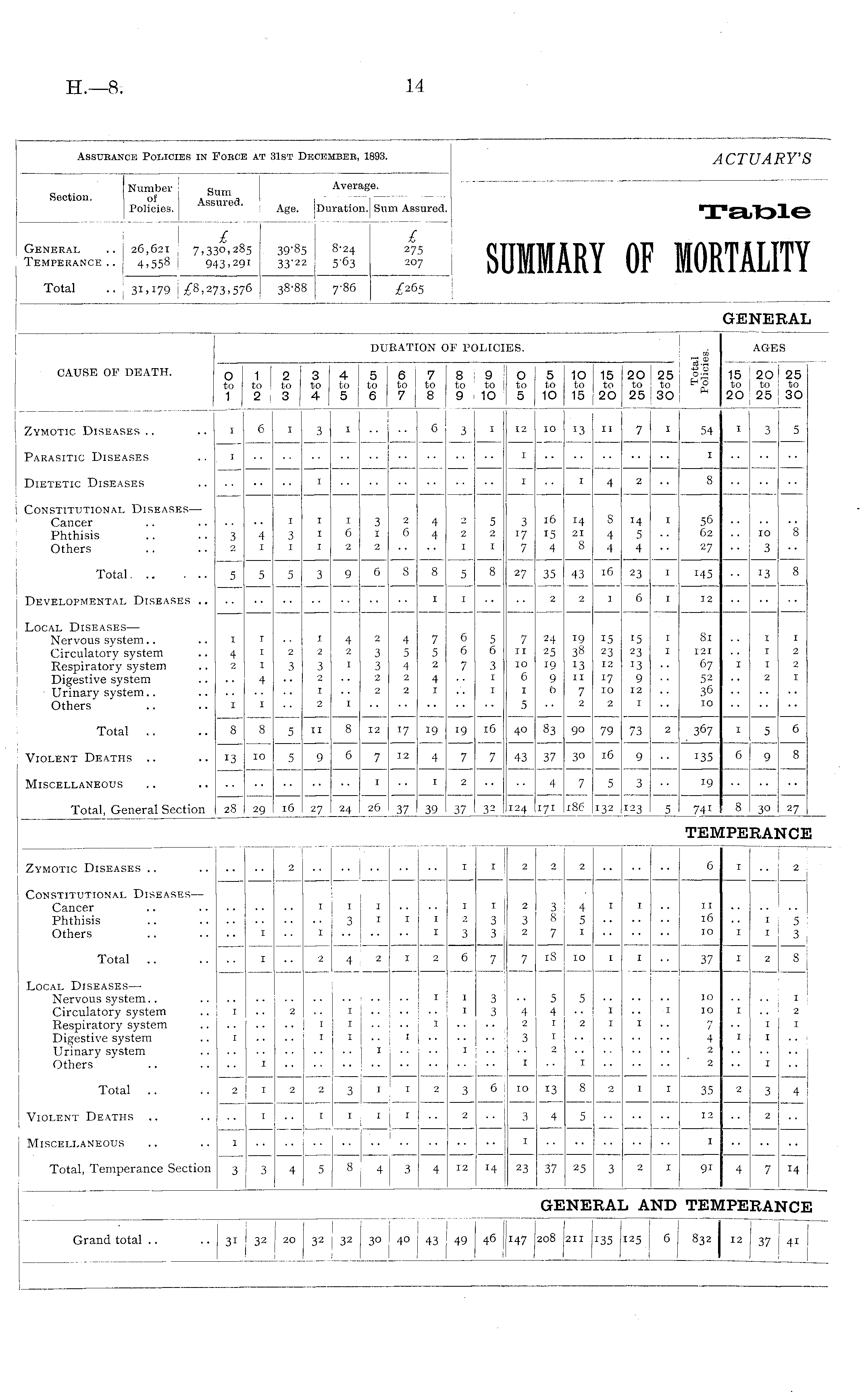 ACTUARY'S Table SUMMARY OF MORTALITY I