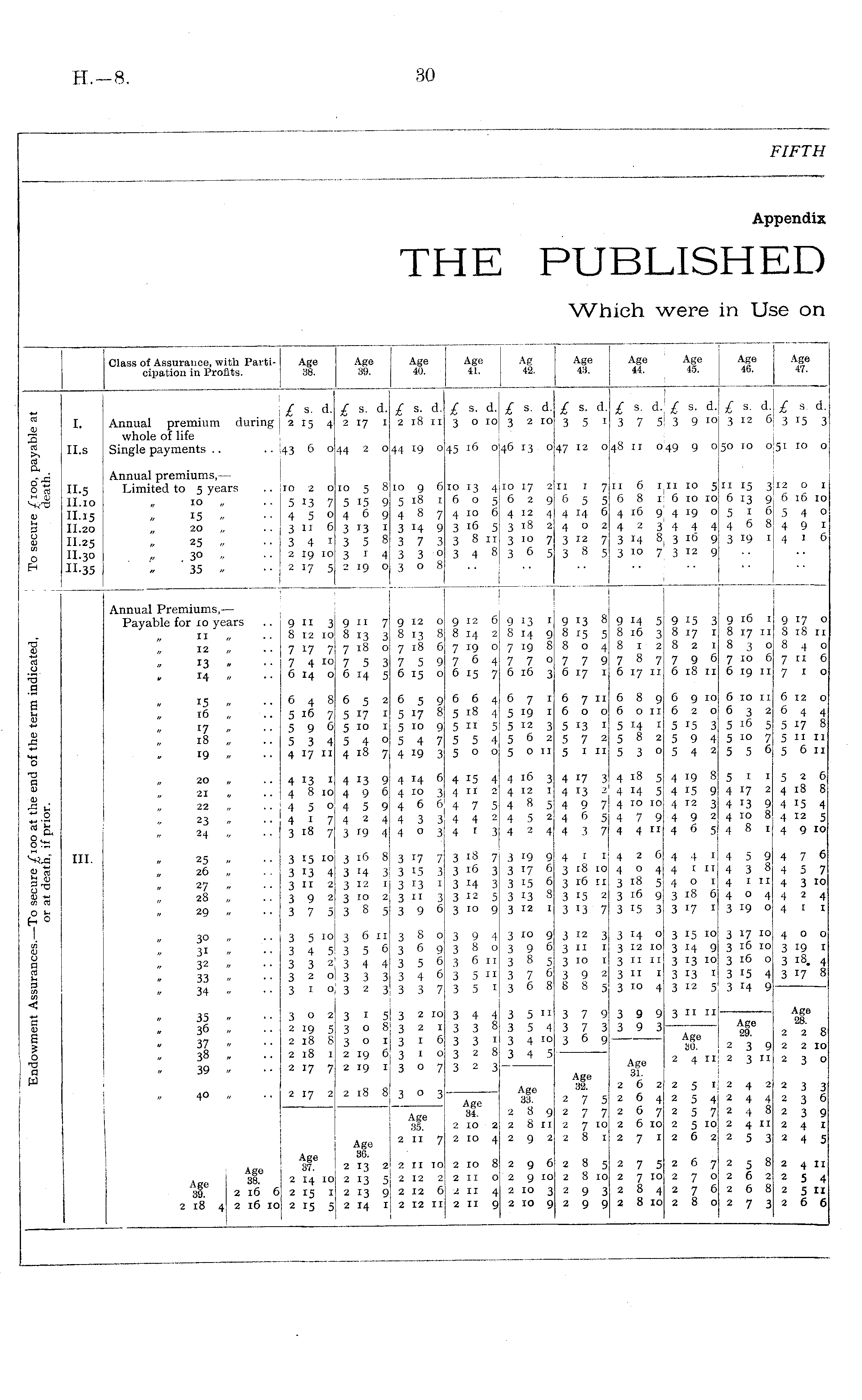 Class of Assurance, with Participation in Profits. Age 38. Age 39. Age 40. Age 41. 42. Age 43. Age 44. Age 45. Age Age 47. / S. d. 2 15 4 £ •• d. 2 17 1 / s. d. 2 18 II £ •■ d - 3 o 10 £ ■■ d. 3 2 10 £ =• d - 3 5 1 £ s. d. 1 f s. d.j 3 7 51 3 9 10 £ s. d. £ ■. d. 3 12 6 3 15 3 3 s a a 6-5 o m m q; ID u 3 O a> O I. 11,8 II.5 II.IO II.i 5 II.20 II.25 II.30 H-35 Annual premium during whole of life Single payments Annual premiums,— Limited to 5 years „ 10 15 » 20 » 25 . 3° » n 35 " 43 6 ° IO 2 O 5 13 7 4 5 0 3 11 6 3 4 1 2 19 10 2 17 5 44 2 o 10 5 8 5 15 9 469 3 13 1 3 5 8 3 I 4 2190 44 19 o 1096 5 18 1 487 3 14 9 3 7 3 3 3 0 308 45 16 oj 10 13 4! 6 o I 410 6 3 16 5 3 8 11 3 4 8 46 13 o IO 17 2 j 6 2 9 4 12 4 3 18 2 3 10 7 3 6 5 47 12 o 11 i 7 6 5 5 4 14 6 402 3 12 7 3 8 5 48 11 049 9 o 11 6 1 11 10 5 6 8 i' 6 10 10 4 16 9 4 19 o 423444 3 14 8 | 3 16 9 3 10 7 3 12 9 50 ro 0151 10 o 11 15 o 1 6 13 9! 6 16 10 516540 4 6 8 1 4 9 1 3 19 14 1 6 I 1 Annual Premiums, — Payable for 10 years I 9 12 6 j 8 14 2 I 7 19 o S 7 6 4 6 15 7 9 13 1 8 14 9 7 19 8 770 6 16 3 9 13 8 8 15 5 804 7 7 9 6 17 1 9 14 5 8 16 3 8 1 2 7 8 7 6 17 11 9 15 3 8 17 1 8 2 1 796 6 18 11 9 16 I 8 17 11 830 7 10 6 6 19 11 9 17 o 8 18 11 840 7 11 6 7 1 o •a o -3 a S I I o ■a a 5 !.* !I j> « D — h ° V) 8 a i en en < a > •s a „ ii// ,, 12 „ 13 - 14 « 9 11 3 8 12 10 7 17 7 7 4 10 6 14 o 9 11 7 8 13 3 7 18 o 7 5 3 6 14 5 9 12 ol 8 13 8J 7 18 6 7 5 9! 6 15 o 15 » 16 „ 17 » 18 „ 648 5 16 7 5 9 6 5 3 4 4 17 11 652 5 17 1 5 10 1 5 4° 4 18 7 6 5 9 5 17 8 5 10 9 5 4 7 4 19 3 664 5 18 4 5 11 5 5 5 4 500 6 7 1 5 19 1 5 12 3 5 6 2 5 o 11 6 7 11 600 5 13 1 572 5 1 11 689 6 o 11 5 14 I 5 8 2 5 3° 6 9 10 620 5 15 3 5 9 4 5 4 2 6 10 11 632 5 16 5 5 10 7 5 5 6 6 12 o 644 5 17 8 5 11 11 5 6 11 19 » „ 20 „ 21 22 „ ..j 4 13 1 4 8 10 4 5O 4 J 7 3 18 7 4 13 9 496 4 5 9 424 3 19 4 4 14 6| 4 i° 3! 4 6 6j 4 3 3 403 ! 4 15 4 , 4 11 2 ; 4 7 5 442 4 1 3 4 16 3 4 12 1 485 4 5 2 424 4 17 3 4 13 2 4 9 7 465 4 3 7 4 18 5 4 H 5 4 10 10 4 7 9 4 4 11 4 J 9 8 4 15 9, 4 12 3 492 465 5 1 1 I 4 17 2 4 13 9 4 10 8 4 8 1 5 2 6 4 18 8 4'5 4 4 12 5 4 9 10 23 „ 24 „ III. 25 „ 26 „ 27 „ 28 „ 29 „ 3 15 10 3 13 4 3 11 2 3 9 2 3 7 5| 3 16 8 3 r 4 3 3 12 1 3102 3 8 5 3 17 7 3 15 3 3 13 : 3 11 3 3 9 6 3 18 7 3 1 5 3 3 14 3 3 12 5 3 10 9 3 19 9 3 17 6 3 15 6 3 13 8 3 !2 1 4 1 i| 3 J 8 10 3 16 n 3 15 2 3 13 7 426 4 ° 4 3 18 5 3 l6 9 3 15 3 4 4 J 4 1 11 401 3 18 6 3 17 I 4 5 9 4 3 8 4 1 11 404 3 19 o 476 4 5 7 4 3 10 424 4 t I „ 30 » 31 » 32 » 33 » 34 - 3 5 10 3 4 5 3 3 2j 3 2 ol 3 1 °i 3 6 11 3 5 6 3 4 4 3 3 3 323 380 3 6 9 3 5 6 3 4 6 3 3 7 3 9 4 380 3 6 11 3 5 ii 3 5 1 3 10 9 3 9 6 3 8 5 3 7" 368 3« 3 3 11 1 3 10 1 3 9 2 885 3 H ° 3 12 10 3 TI XI 3 11 1 3 10 4 3 15 10 3 14 9 3 13 10 3 13 Ij 3 12 5 1 3 17 10 3 16 10 3 16 o J 3 15 4 1 3 14 9 400 3 19 I 3 18. 4 3 17 8 35 " • ■ 36 „ 37 " 38 » 39 w • • 302 2 19 5 2 18 8 2 18 1 2 17 7 3 1 5\ 308; 3 o 1 2 19 6 2 19 1 3 2 10 3 2 1 3 1 °l 3 I ° 307 3 4 4 3 3 8 13 3 1 3 2 8 323 3 5 11 3 5 4 3 4 10 3 4 5 3 7 9 3 7 3 369 3 9 9 3 9 3 t 3 n 11 Age 29. j 2 3 9 ; 2 3 II Age 228 Age SO. I 2 4 II, , 2 2 10 40 ., 2 17 a 2 r8 8 303 Age 34. 2 IO 2 2 IO 4 Age 33. 289 2 8 11 Age 32. 275 277 2 7 10 2 8 I Age 31. 262 264 2 6 7 2 6 10 2 7 I 251; 2 5 4J 2 5 7 2 5 IO 262 I 2 4 2 I 2 4 4 248 2 4 11 2 5 3 230 2 3 3 2 3 6 2 3 9 2 4 I 2 4 5 Age 35. 2 II 7 292 Age Age 3 8; 39, 2 16 6 2 18 4 2 16 IO Age 87. 2 14 10 2 15 1 2 15 5 Age 30. 2 13 2 2 13 5 2 13 9 2 14 I 2 II IO 2 12 2 2 12 6 2 12 II 2 IO 8 I 2 II O 296 2 9 10 2 10 3 2 10 9 2 8 5 2 8 IO 293 299 2 7 5 2 7 IO 284 2 8 10 267 270 276 280 2 5 8 262 268 2 4 II 2 5 4 2 5 ti 2 6 6 J II 4 2 11 9 2 7 3