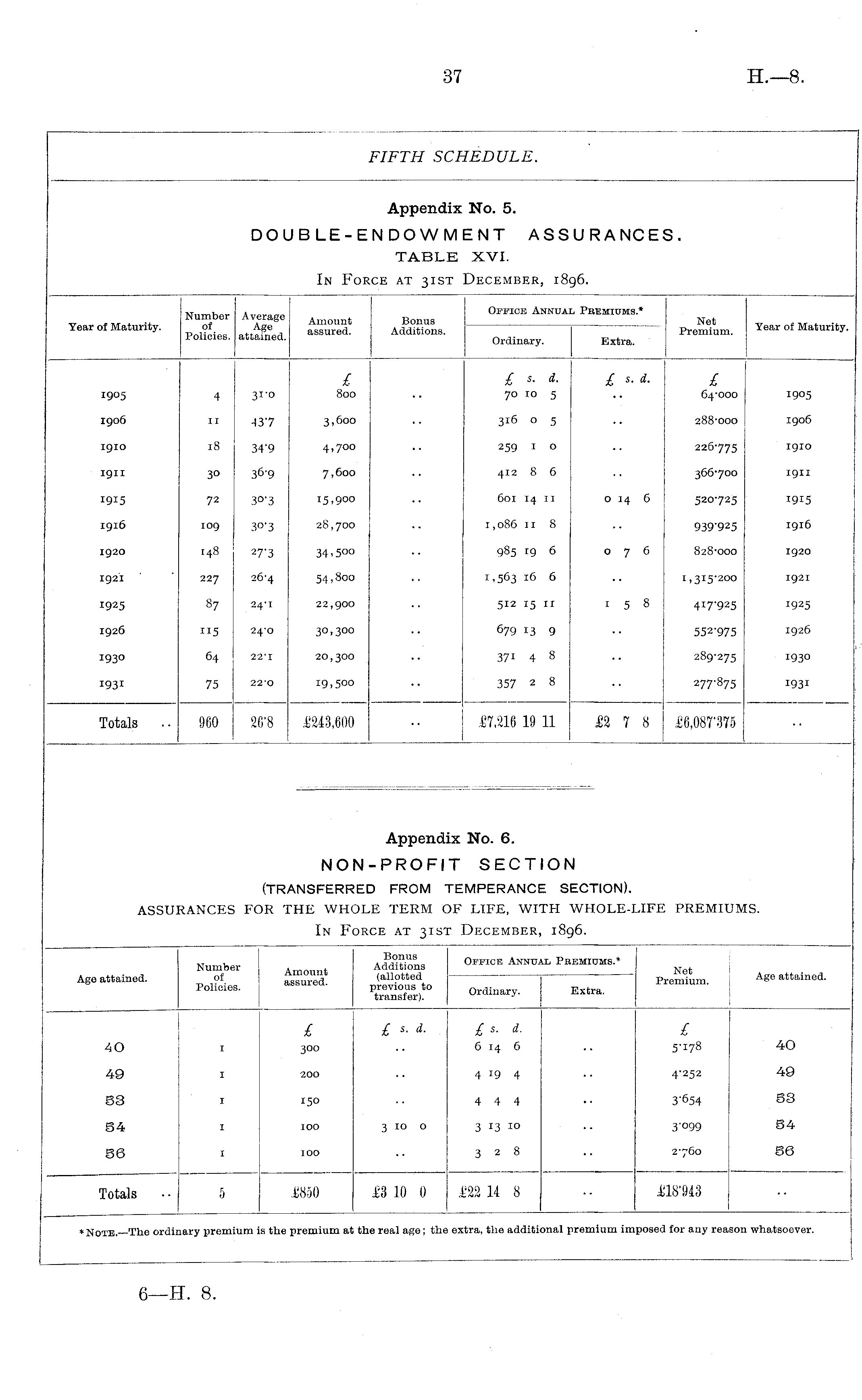 Appendix No. 5. DOUBLE-ENDOWMENT ASSURANCES. TABLE XVI. In Force at 31st December, 1896.