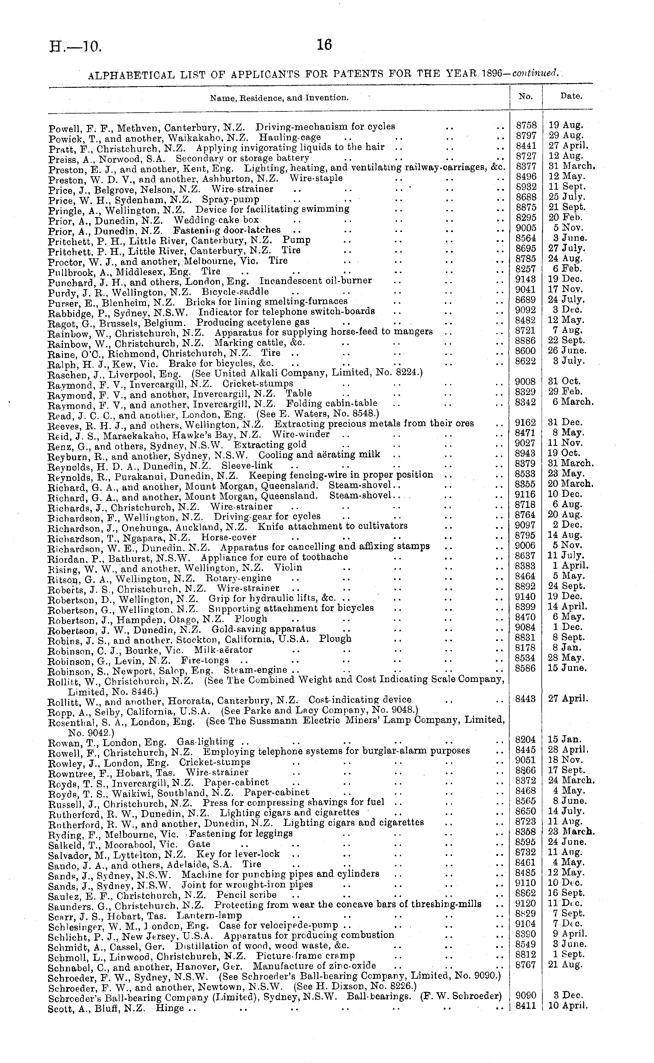 ALPHABETICAL LIST OF APPLICANTS FOR PATENTS FOR THE YEAR 1896-continued.