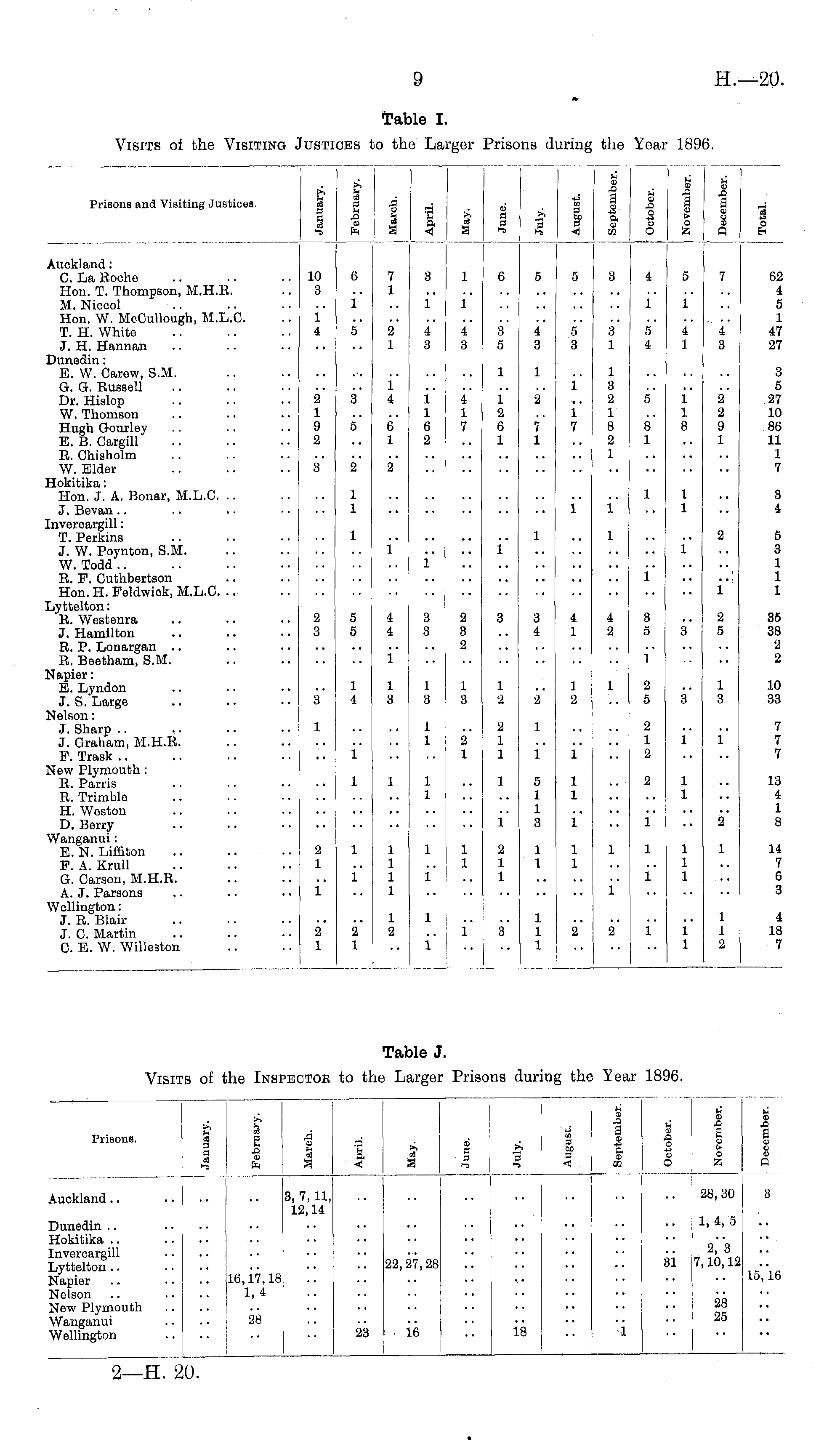 Table J. Visits of the Inspector to the Larger Prisons during the Y ear 1896.