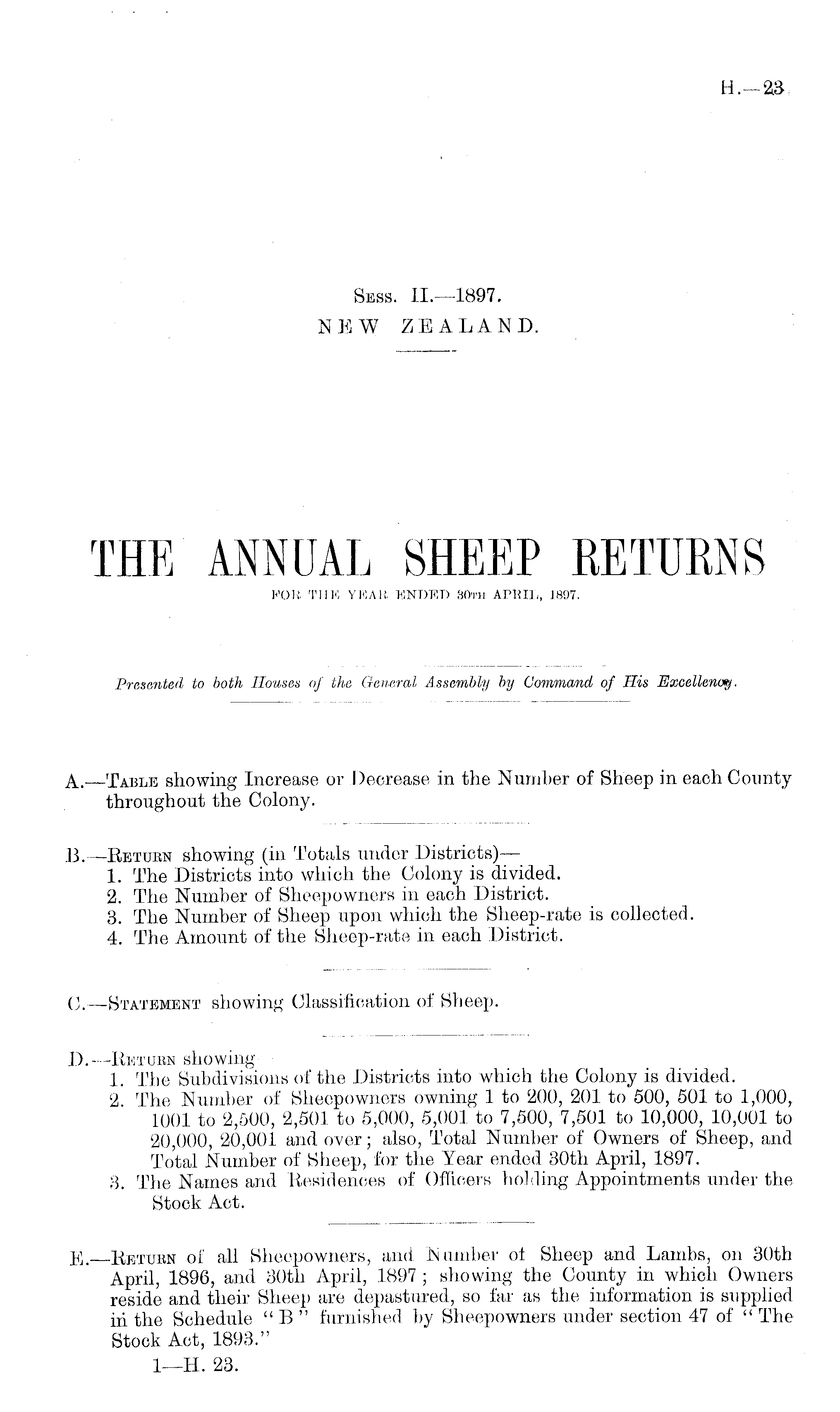 THE ANNUAL SHEEP RETURNS FOR THE YEAR ENDED 30th APRIL, 1897.