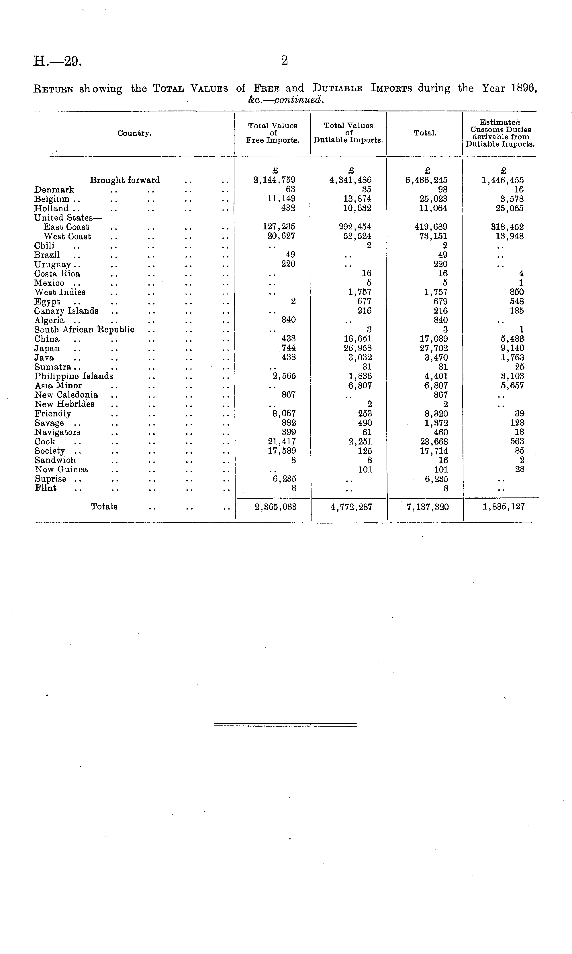 Return showing the Total Values of Free and Dutiable Imports during the Year 1896, &c. — continued.